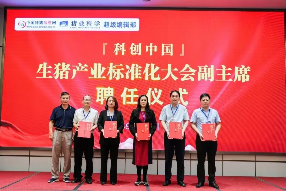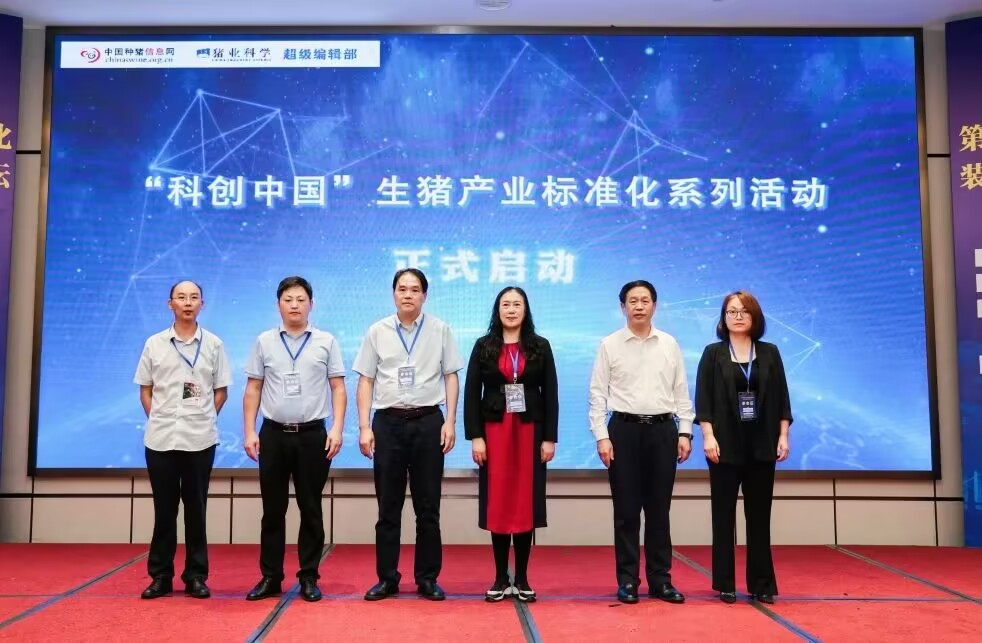 论坛策划了“科创中国”生猪产业标准化系列活动,希望通过系列活动,深化我国生猪产业标准化建设,让标准深入产业发展各环节。我院张传师书记、院长作为论坛副理事长与各位理事长共同启动助力“科创中国”生猪产业标准化系列活动。本次论坛还举办了生猪产业标准化大会副主席聘任仪式,国家生猪产业技术创新战略联盟秘书长、华南农业大学邓近平教授为我院长张传师院长等9名专家颁发了聘书。论坛报告交流环节,我院潘军博士在会上做了《智能养猪背景下生猪养殖产业技术标准开发探讨》报告交流。