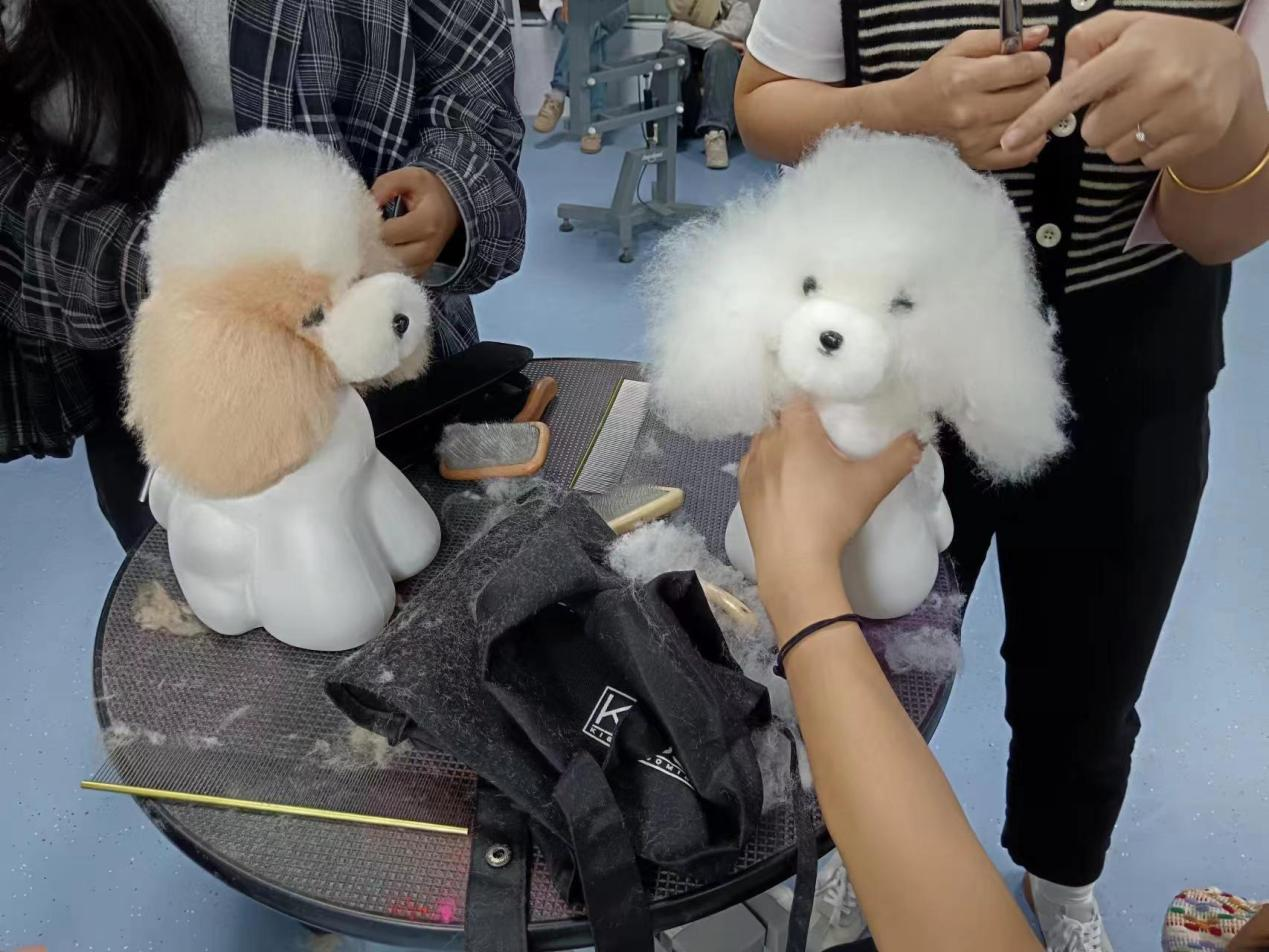 下午3点,重庆宠博仕宠物美容培训中心的负责人蔡老师为学生们展示了宠物美发技巧,让他们了解了美容行业的实际操作。