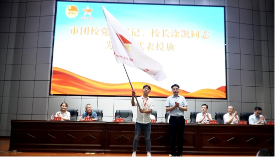 随后,市教委宣教处副处长尤春艳宣读了本次培训的班委名单和培训纪律。市团校党委书记、校长涂凯为学员代表进行了授旗。