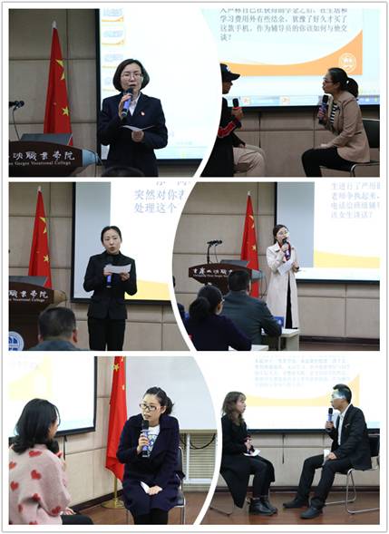 本次比赛历时一周,分为初赛、决赛两个阶段,经过初赛基础能力测试及网文写作选拔,共有6名辅导员进入决赛。决赛包括案例分析、谈心谈话和理论宣讲3个环节,着重考察辅导员综合运用法律法规、教育学、心理学、生涯规划及学生事务管理等相关知识解决现实问题的能力。谈心谈话环节采取情景再现的形式,题目涉及学生日常事务管理、校园危机事件应对、学生价值观引领等方面,选手们认真倾听助演人员所遇到的困惑,运用相关政策,或共情暖心,或谆谆教导,彰显辅导员“人生导师和知心朋友”工作本色。理论宣讲环节,参赛辅导员通过理论和实际相结合,带来了立意新颖、具有强烈感召力的演讲,使在场师生受益匪浅。
