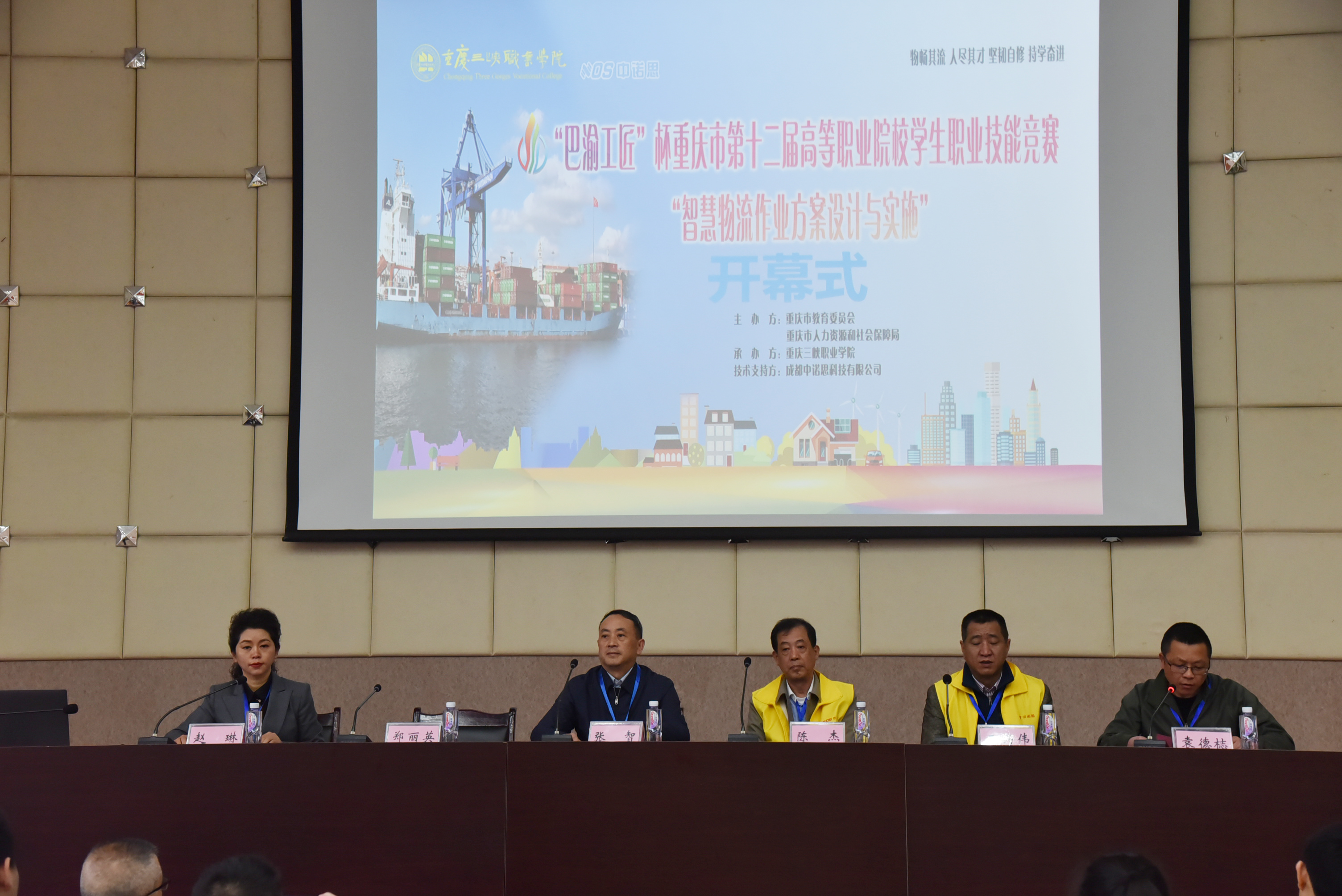 3月27日上午,由重庆市教育委员会、重庆市人力资源和社会保障局共同主办,我校承办的“巴渝工匠”杯重庆市第十二届高职院校学生职业技能大赛“智慧物流作业方案设计与实施”赛项在博雅楼学术报告厅正式拉开帷幕。大赛组委会成员、裁判员、各参赛队伍领队、指导教师、参赛学生、学生志愿者等参加了此次开幕式。开幕式由教务处处长袁德梽主持。