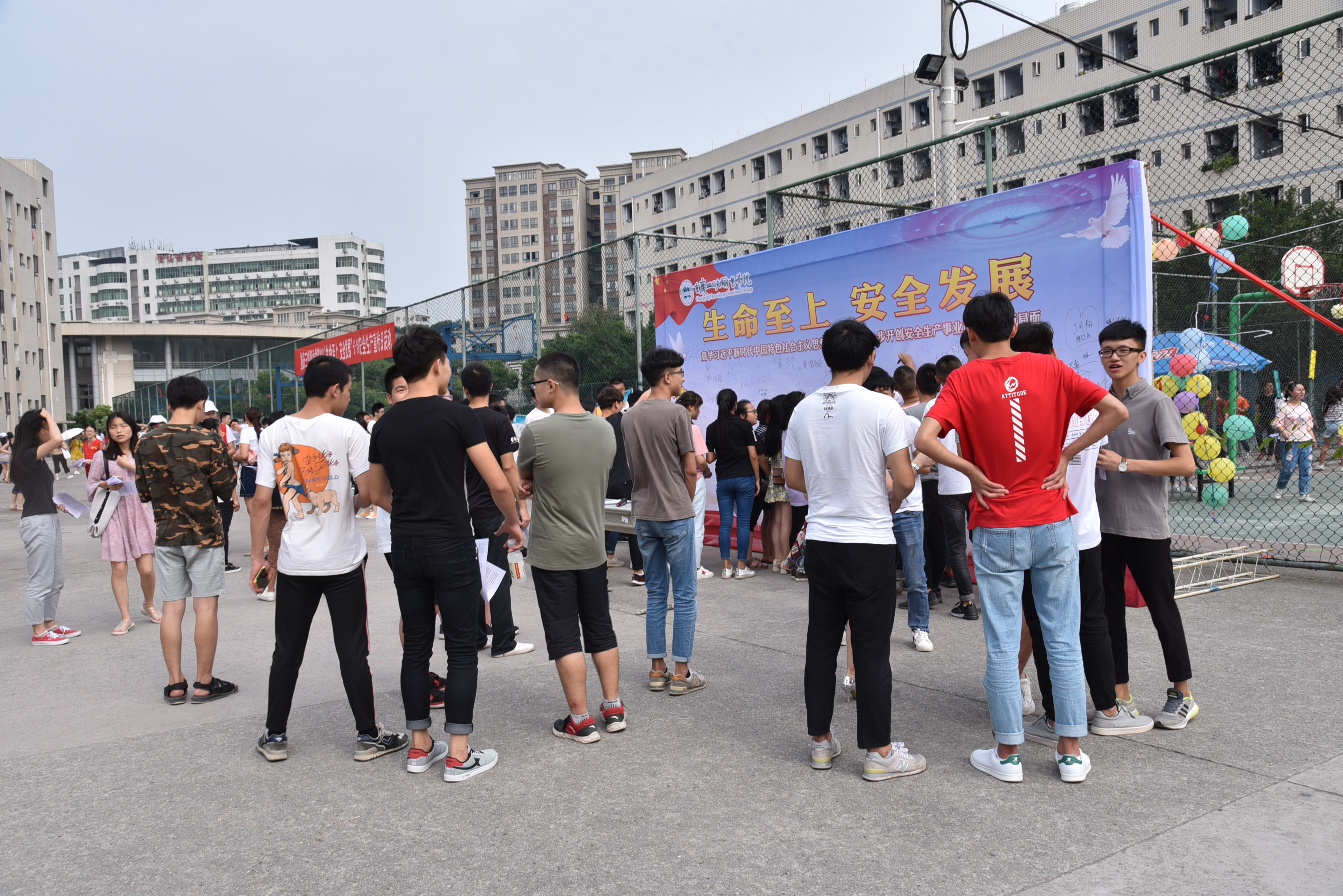 为大力弘扬“生命至上、安全发展”的思想,增强师生安全意识和防灾减灾能力,在“6.16”安全宣传咨询日来临之际,安全处会同院团委和6个教学系于2018年6月14日下午篮球场举办了“6.16”安全宣传咨询日暨安全生产渝州行活动,九游网页版·官方站入口1000余师生参加了活动。