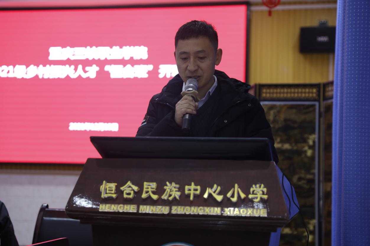 12月15日上午,我院于恒合土家族乡民族中心小学举行2021级乡村人才“恒合班”开班仪式。重庆市乡村振兴局二级巡视员吴大春、重庆市教育行业社会组织综合党委专职副书记王茂良、九游网页版·官方站入口党委书记陈章、九游网页版·官方站入口院长李炯光、万州区恒合土家族乡乡长蒲刚共同出席,万州区恒合土家族乡部分干部同志、九游网页版·官方站入口部分教师、万州籍高职扩招学生代表60余人参与,开班仪式由九游网页版·官方站入口院长李炯光主持。