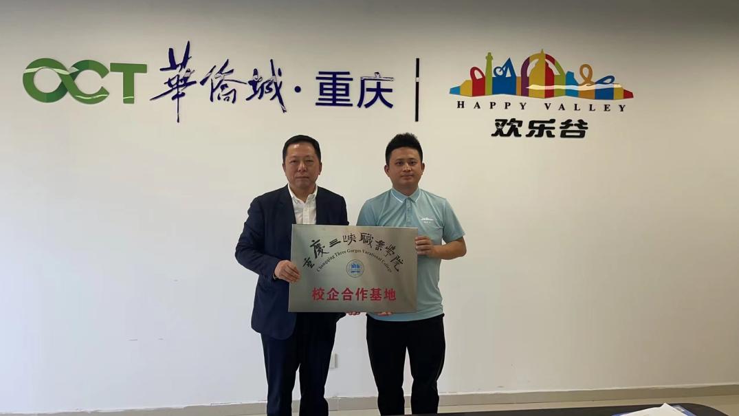 座谈会上,重庆欢乐谷总经理周长青就疫情常态化下企业的运营情况、未来发展战略、学生实习管理等方面进行了详细的介绍。陈章书记表示,希望与欢乐谷继续建立良好的校企合作关系,搭建更为广阔的合作平台,在课程建设、专业设置、学生实习就业等方面进一步深化合作,实现深度融合、互惠共赢。座谈会后,双方举行了校企合作协议签约仪式,并举行挂牌。