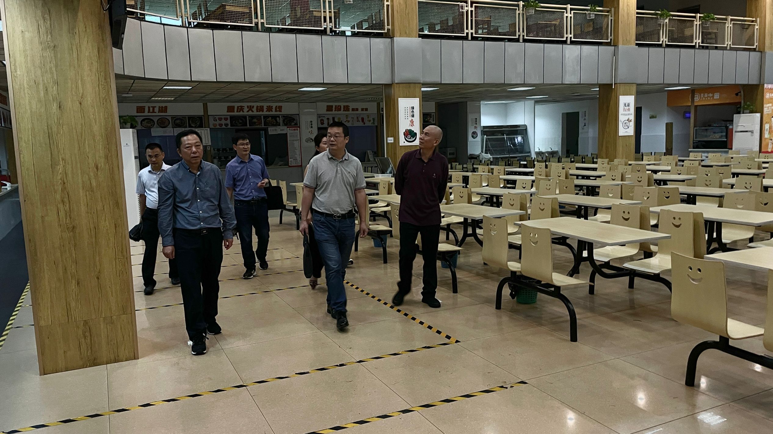 5月25日下午,重庆市教委基建后勤处处长陈明政到九游网页版·官方站入口沙龙校区调研。九游网页版·官方站入口党委书记陈章,党委委员、副院长赵福奎陪同调研。