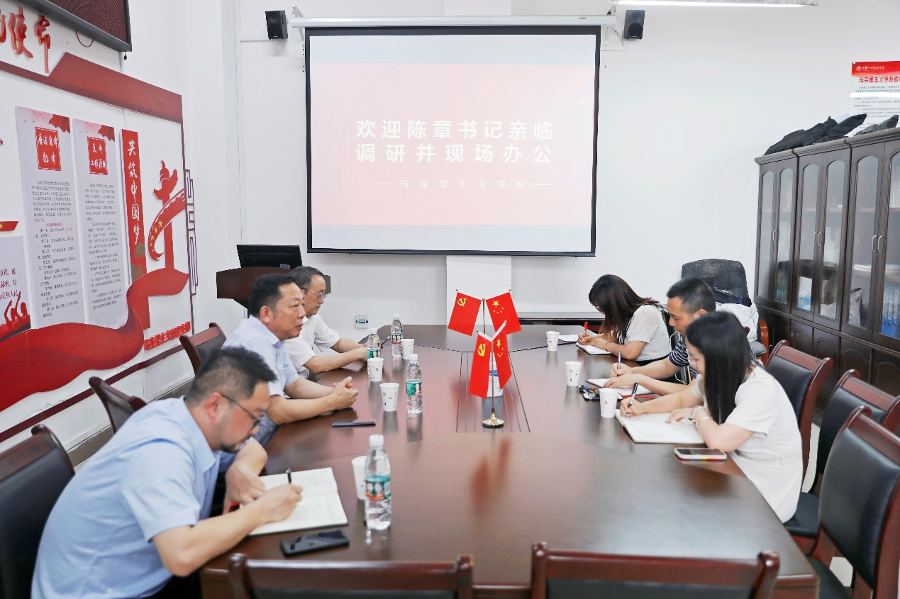7月7日下午,九游网页版·官方站入口党委书记陈章带队到马克思主义九游网页版·官方站入口调研指导工作,并就马克思主义九游网页版·官方站入口建设发展进行研究部署。党委副书记张智陪同调研。党政办负责人、马克思主义九游网页版·官方站入口党政领导班子、支委会成员参加座谈。
