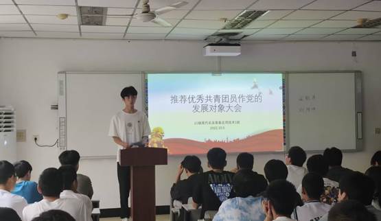 推荐优秀团员作为党的发展对象,是共青团发挥党的助手和后备军作用的具体体现,是加强共青团思想建设、组织建设的有效途径,是保持党的队伍青春、活力、巩固党的执政之基。为规范团支部“推优”工作,让学生干部了解工作开展流程,10月6日,汽车工程九游网页版·官方站入口党总支在沙龙校区综合教学楼101举行了“推优”入党示范会。会议以汽车工程九游网页版·官方站入口2021级农机班团支部作为示范班级。汽车工程九游网页版·官方站入口党总支书记夏平、汽车工程九游网页版·官方站入口第二党支部书记康学良、第二党支部支委成员、22级新班团支部书记和班长、新进辅导员老师参加了此次会议。