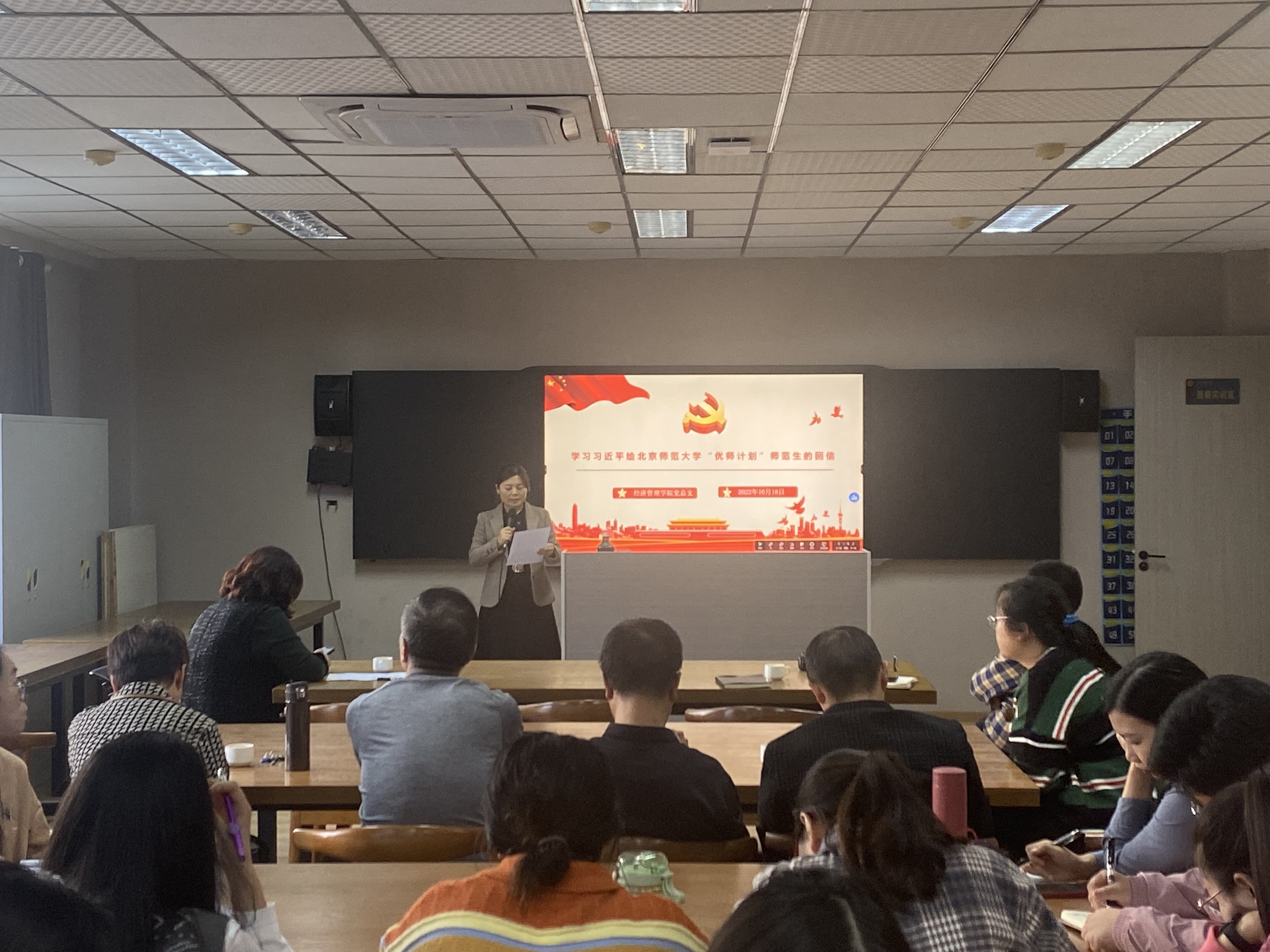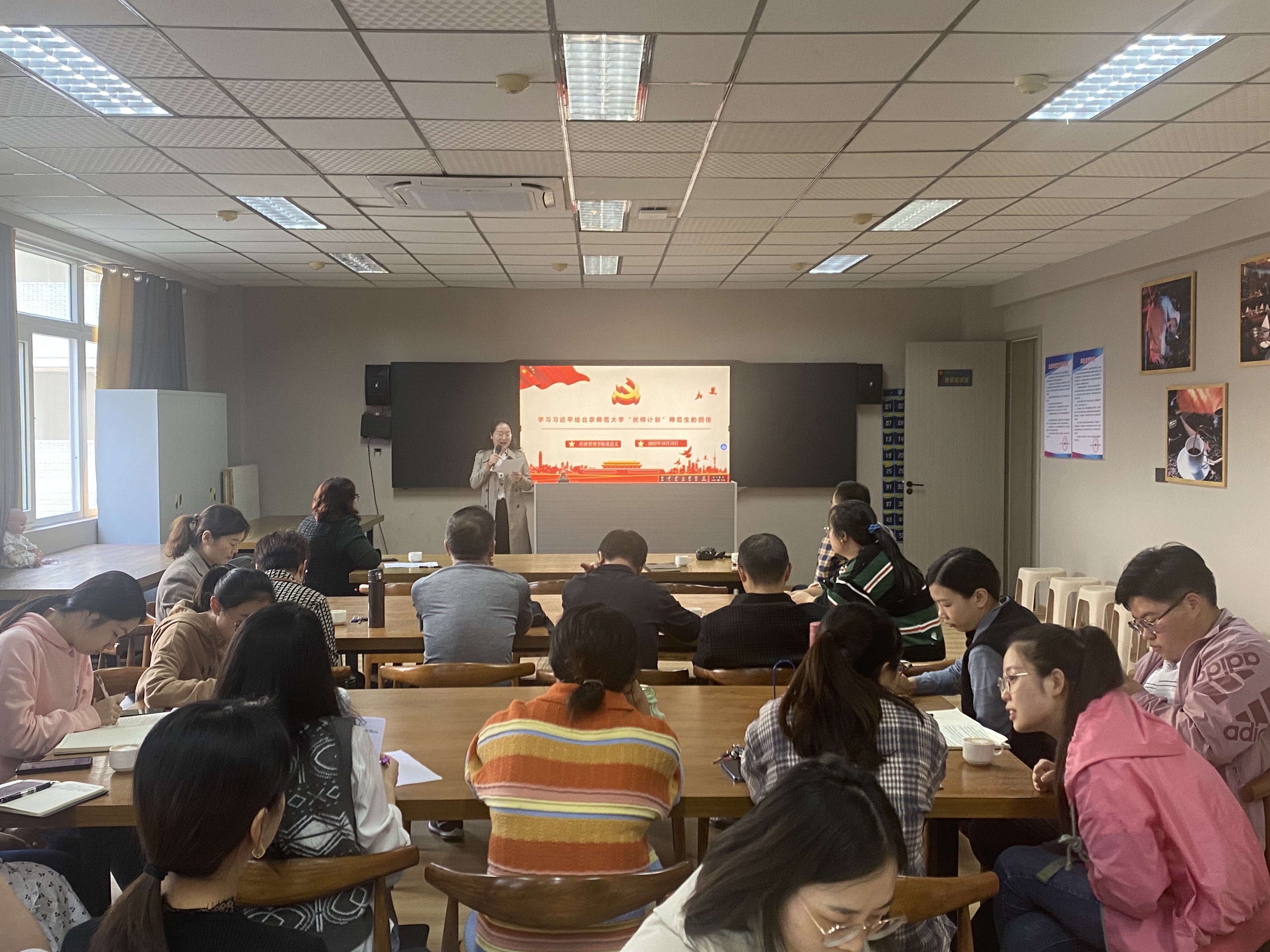会上集中学习了《习近平谈治国理政》第四卷“关于《中共中央关于党的百年奋斗重大成就和历史经验的决议》的说明”“续写马克思主义中国化时代化新篇章”“新时代党和人民奋进的必由之路”、习近平总书记给北京师范大学“优师计划”师范生的回信等、内容。随后,宋丽丽、孙立芳老师分别作为专任教师代表和辅导员代表作学习交流发言。