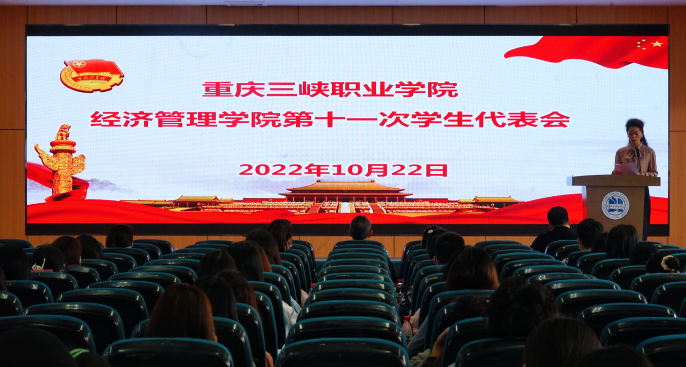 不忘初心跟党走,青春建功新时代。在全国上下热烈庆祝党的二十大胜利召开之际,10月22日上午,经济管理九游网页版·官方站入口在沙龙校区二楼学术报告厅组织召开了第十一次学生代表大会,九游网页版·官方站入口党委副书记张智,党政办主任、团委书记马绍文,经济管理九游网页版·官方站入口党总支书记、院长赵琳以及全院推选的120名学生代表参加了本次大会。大会开幕式由经济管理九游网页版·官方站入口党总支副书记张恩广主持。
