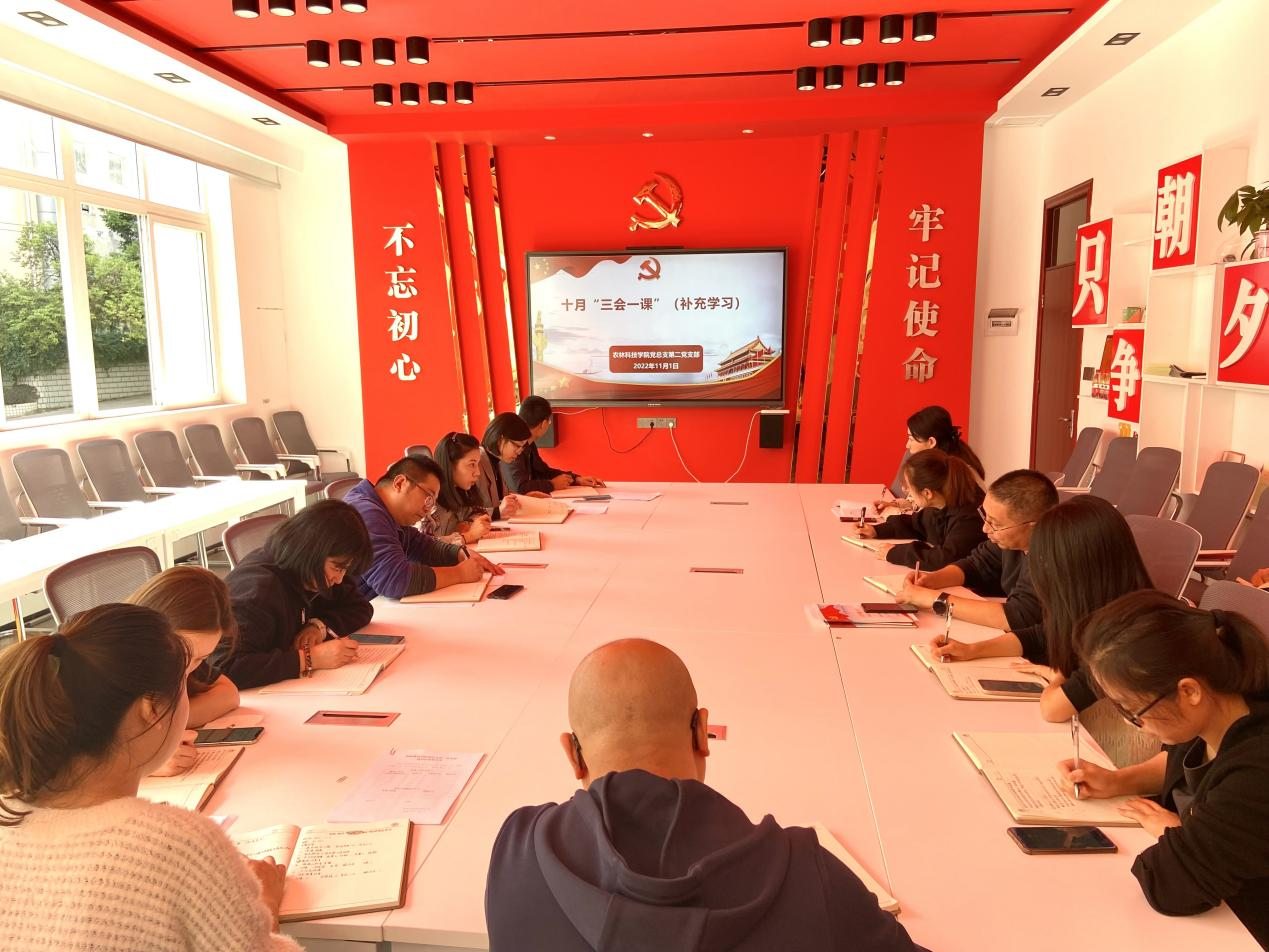 11月1日中午,农林科技九游网页版·官方站入口第二党支部全体党员在农林楼203开展了十月“三会一课”政治内容补充学习,由支部书记吴琼同志领学,全体支部党员参加。