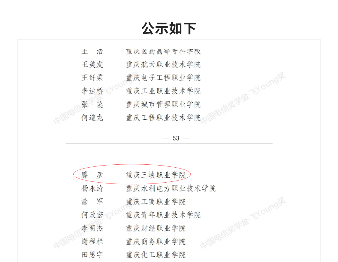 近日,由共青团中央、中国电信集团有限公司、全国学联联合开展的2021年度“中国电信奖学金”评选活动结果揭晓。经学院推荐、重庆市初评和全国评审,我院经济管理九游网页版·官方站入口2020级市场营销1班滕彦同学荣获“中国电信奖学金•飞Young奖”。