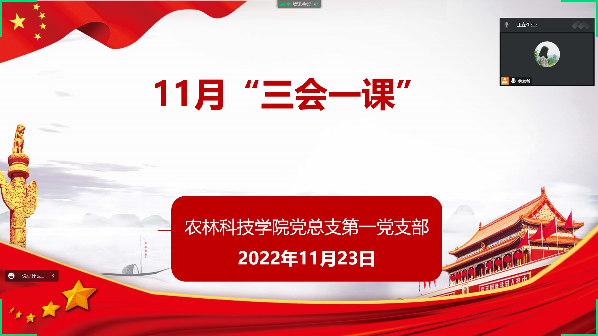 11月23日,农林科技九游网页版·官方站入口党总支第一党支部在腾讯会议上开展线上11月“三会一课”学习,会议由支部书记余夏君同志主持。