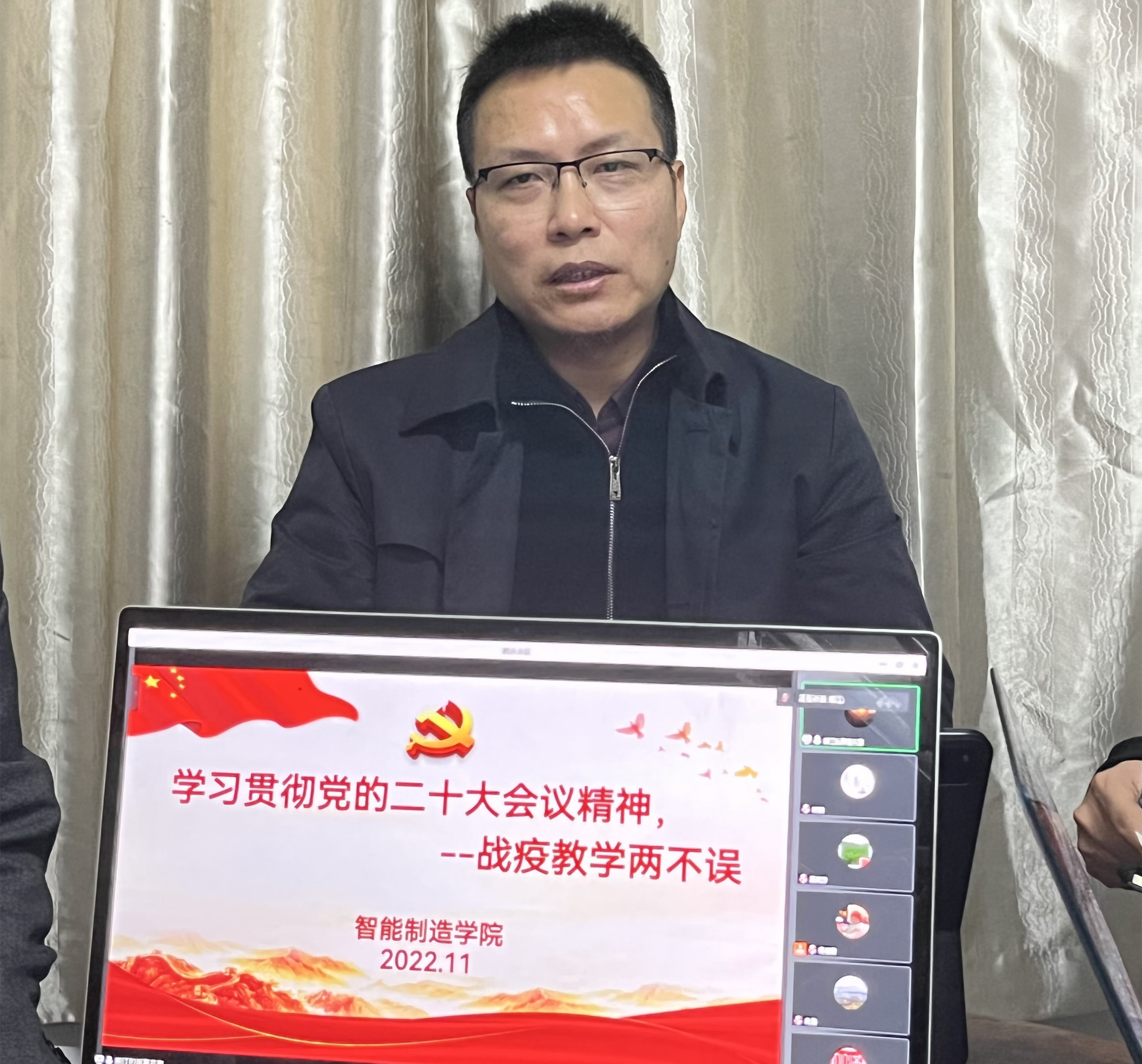 11月27日,智能制造九游网页版·官方站入口在留学生公寓305值班室以线上线下相结合的形式开展了11月专题政治理论学习,全体教职工参加了学习,会议由党总支副书记黄滔主持。