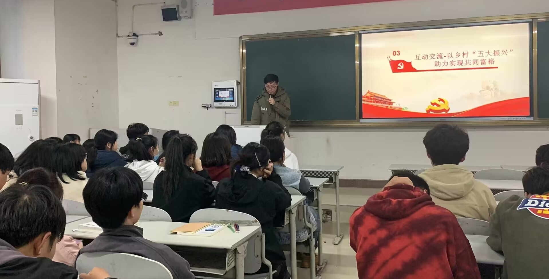 宣讲会上,宋杨同志从大会主题出发,深度解析党的二十大报告内容,号召广大师生和群众以实际行动和具体成效把大会精神学到深处落到实处。同时结合自身经历,从志愿服务传递人间温情,为党育人、为国育才,走好走实乡村振兴之路 全力推动党的二十大精神落地开花结果三个方面展开。最后引出乡村产业、人才、文化、生态、组织五个方面振兴的内容,鼓励师生群众们要以党的二十大精神为引领,为人民服务,积极参与职业教育发展,赋能乡村振兴。