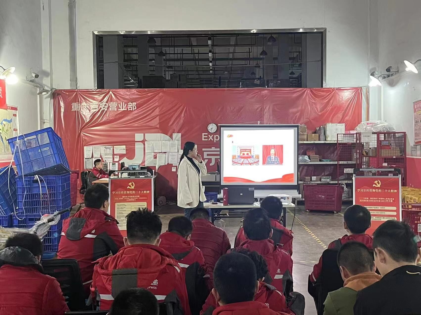为更有针对性、实效性学习宣传党的二十大精神,进一步激发企业员工干事创业的热情与干劲,提高校企合作共建质量,3月31日,经济管理九游网页版·官方站入口物流管理专业青年教师朱宇雪走进重庆京东快递万州百安站点开展党的二十大精神宣讲。