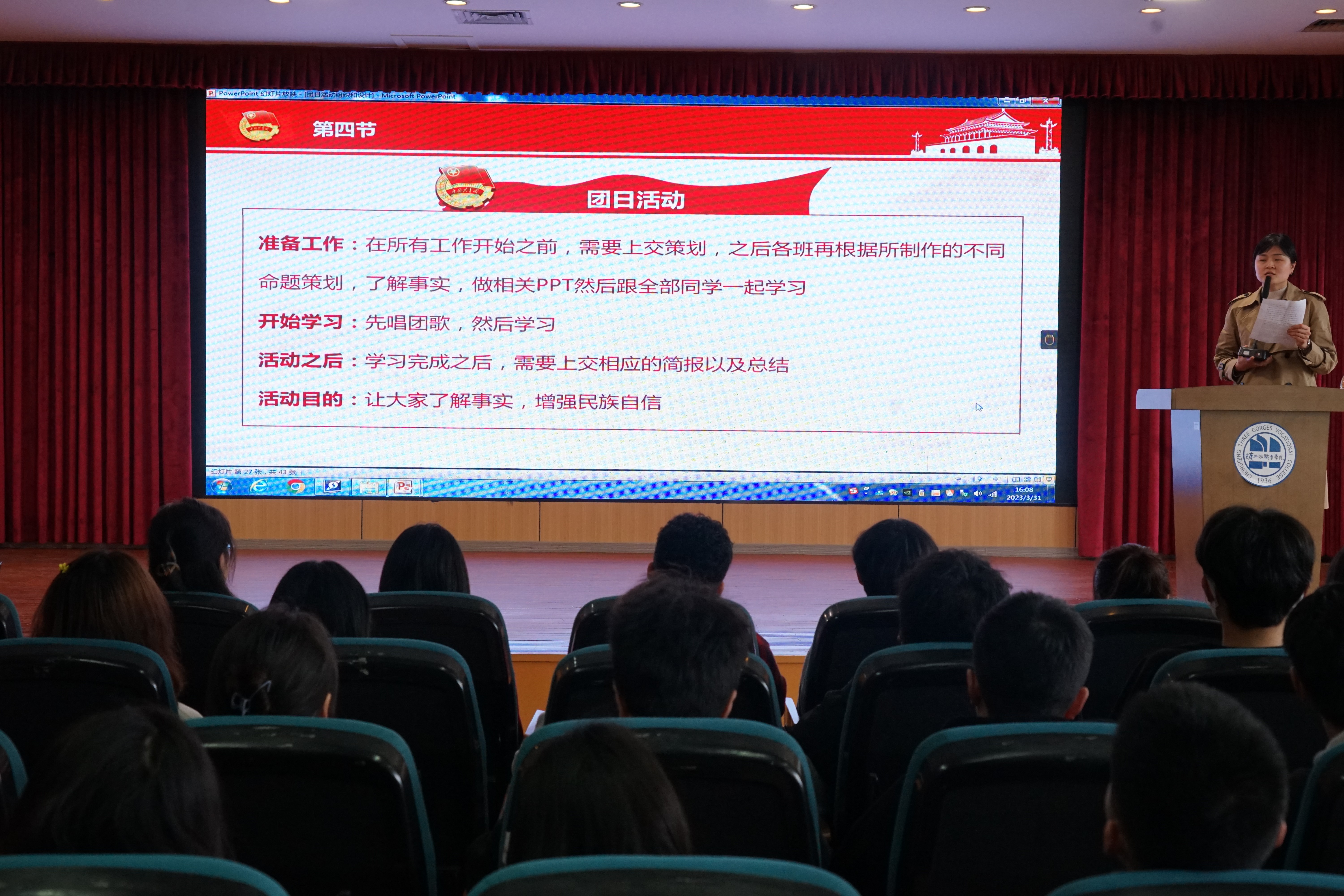 为深入学习宣传贯彻党的二十大精神,落实全面从严治党、从严治团要求,着力培养一支政治上强、思想上强、能力上强、担当上强、作风上强、自律上强的团干部队伍,不断提升团的组织力,为团干部搭建展示自我、提升技能和交流工作的平台,以抓团干部队伍促进基层团组织全面活跃。4月17日下午,经济管理九游网页版·官方站入口团总支在沙龙校区学术报告厅对各班团干部开展“青年先锋培训”主题团日活动设计与指导培训,培训由团总支书记赵颖老师主讲。