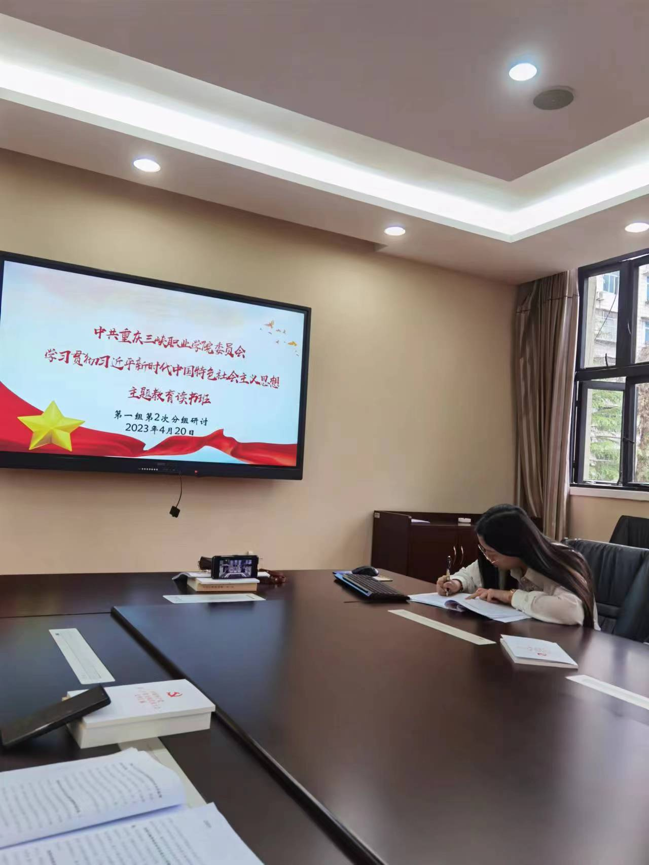 4月20日,中共重庆三峡职业委员会学习贯彻习近平新时代中国特色社会主义思想主题教育读书班第一组开展了第二次分组研讨。本次交流讨论应到9人,实到8人,其中线上参会1人;1人因公出差,后期通过书面报道提交讨论心得。
