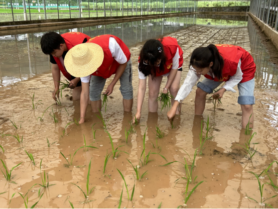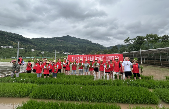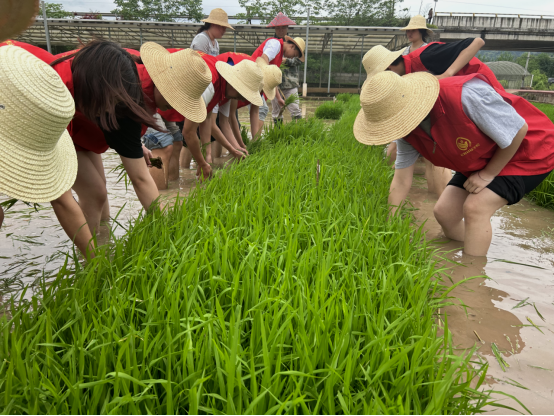 “手把青秧插满天,低头便见水中天”。为了让同学们了解正确的种植方法以及安全事项,三峡农科院刘军化老师亲自示范了插秧的步骤与技巧。掌握各项要领后,同学们迫不及待要一试身手,他们踏入农田,弯腰踩在水田里,左手攥秧把,右手插秧苗,在与大自然的互动中感受农耕文化,体会劳动的艰辛与喜悦,也深切懂得了“知农事,学农耕,惜农食”。经过大家的努力,一片绿油油的秧苗迎风招展,劳动的喜悦涌上了同学们的心头。此时,“锄禾日当午”的诗句不再是空洞的诗句,而是真实的劳动体验。挥洒了汗水的同时,大家也播种了希望。