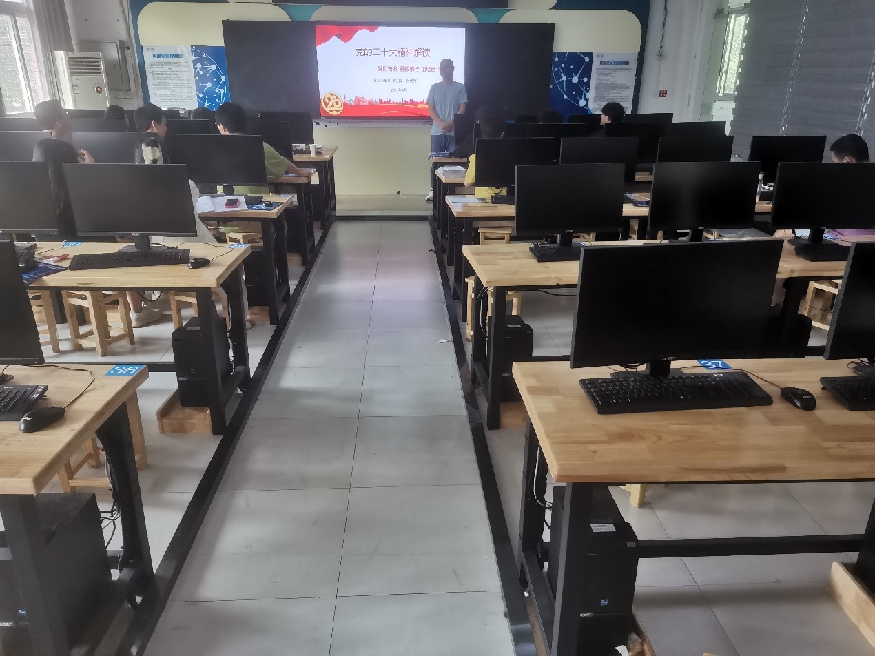 为深入学习贯彻习近平新时代中国特色社会主义思想和党的二十大精神,把力量凝聚到落实立德树人根本任务、提高广大党员的思想理论水平和工作实践能力上来,2023年6月13日,人工智能九游网页版·官方站入口党总支第三党支部书记吴勇帑以“党的二十大精神解读”为主题,在信科楼507教室为支部党员师生上专题党课。