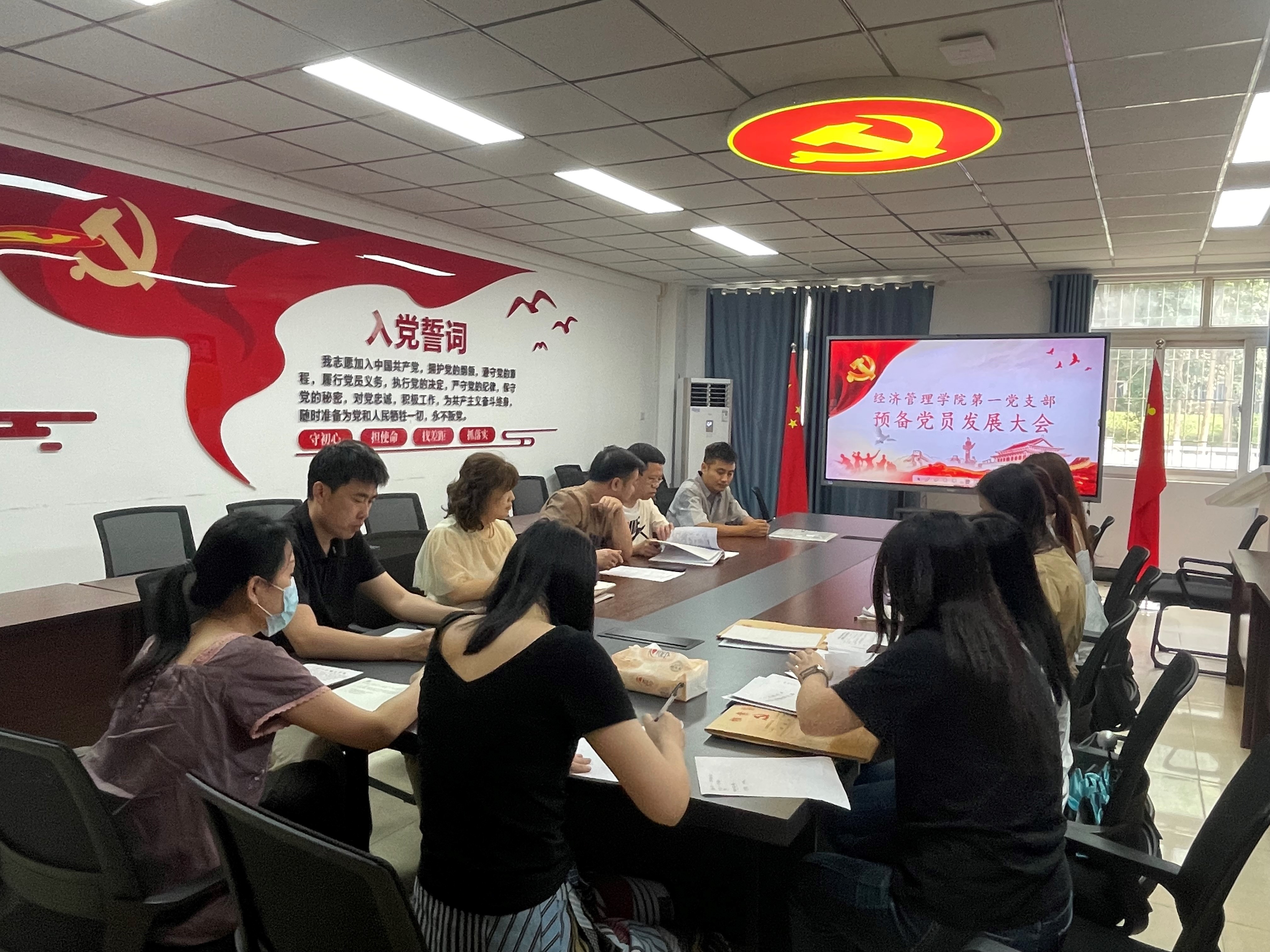 为进一步加强党员队伍建设、不断提升党组织战斗力,2023年6月13日,经济管理九游网页版·官方站入口党总支第一党支部在沙龙校区综合楼会议室召开讨论吸收预备党员大会,本次会议共吸收3名预备党员。会议由党支部书记宋丽丽主持。