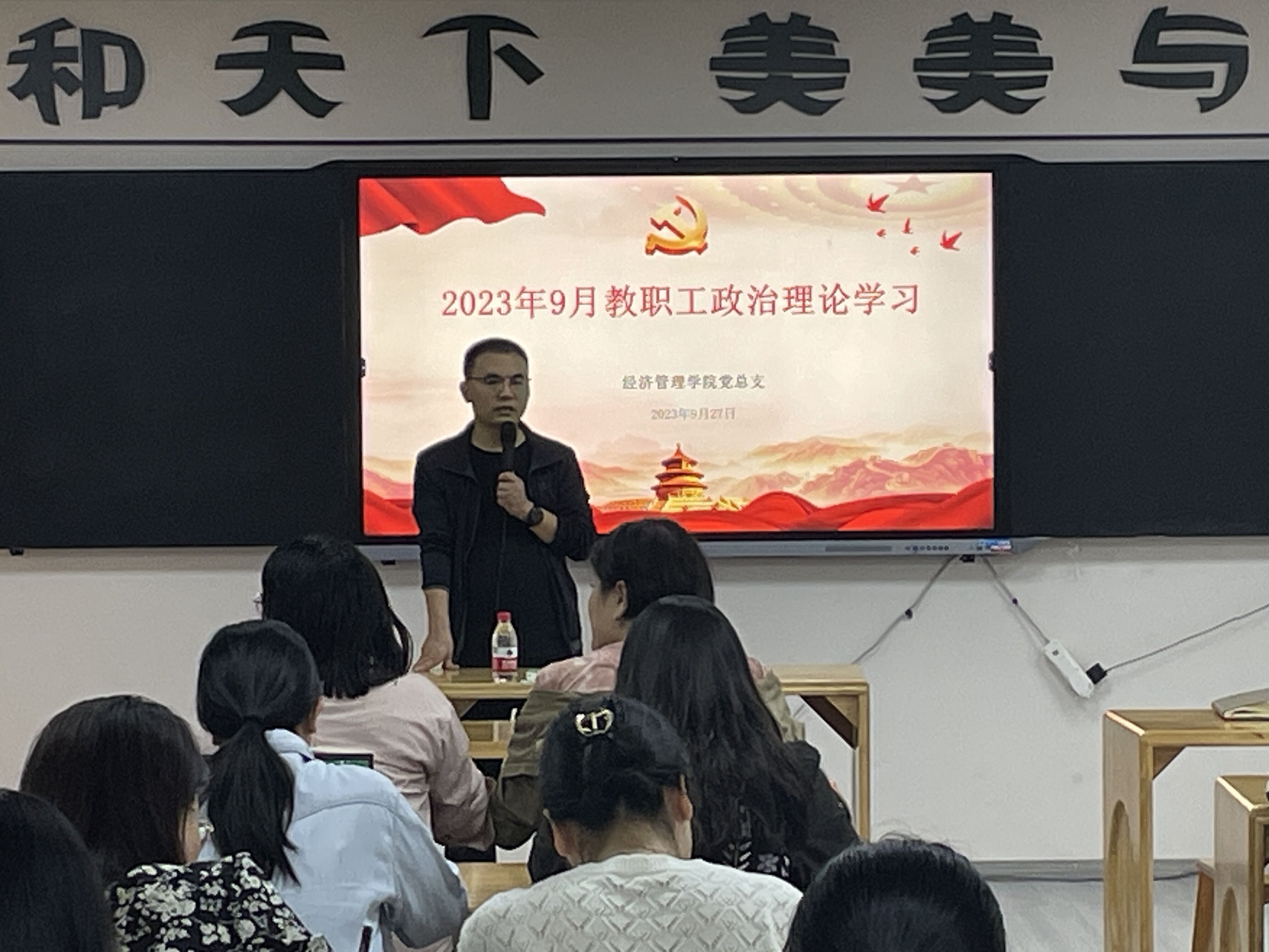 9月27日上午,经济管理九游网页版·官方站入口在沙龙校区综合楼茶艺实训室召开九游网页版·官方站入口教职工9月政治理论学习和师德师风教育会。本次学习由经济管理九游网页版·官方站入口党总支副书记张恩广主持,全体教职工参加。