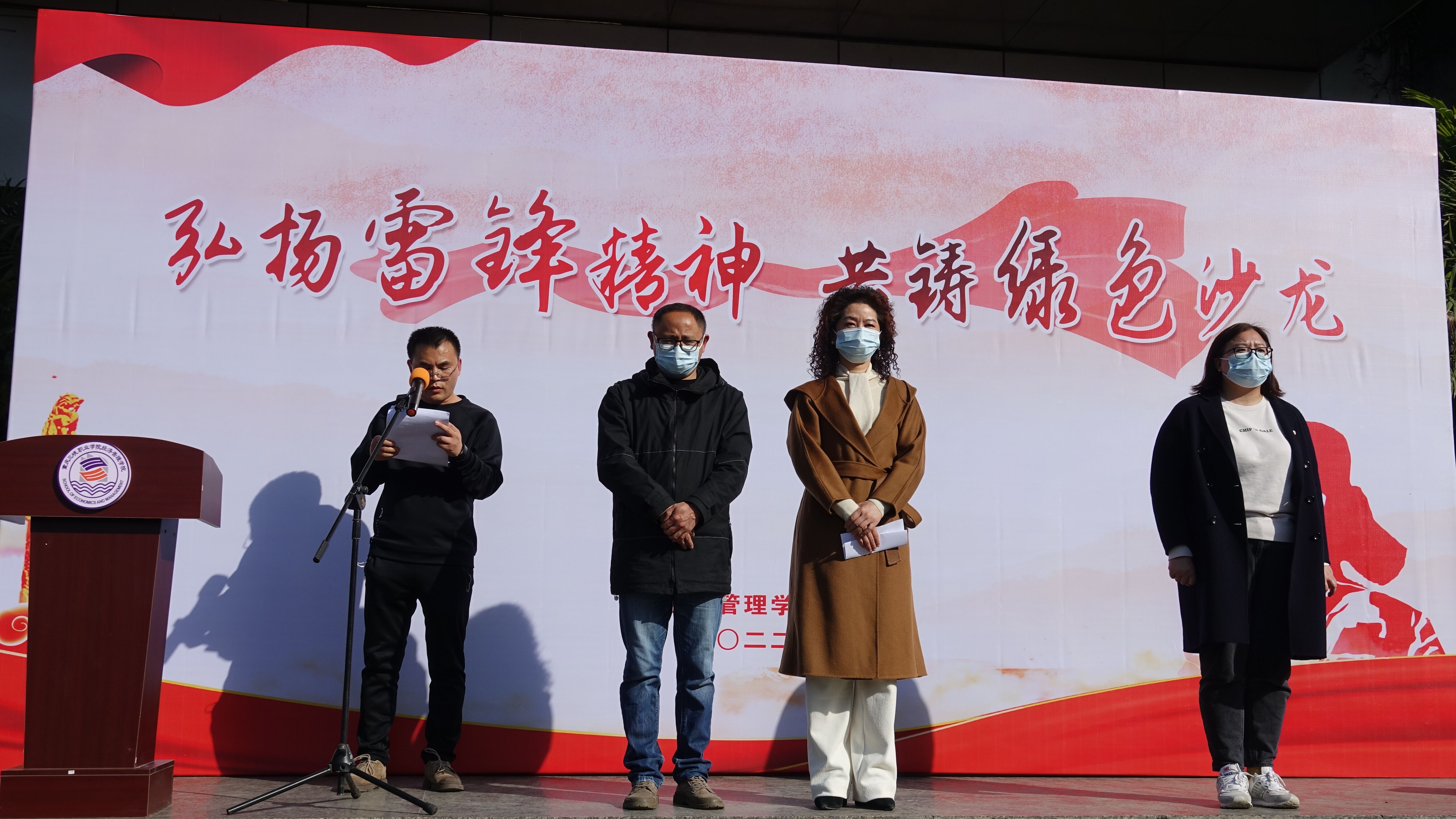 经济管理九游网页版·官方站入口党总支书记、院长赵琳为“弘扬雷锋精神,共铸绿色沙龙”主题志愿服务月活动授旗并宣布活动正式启动。