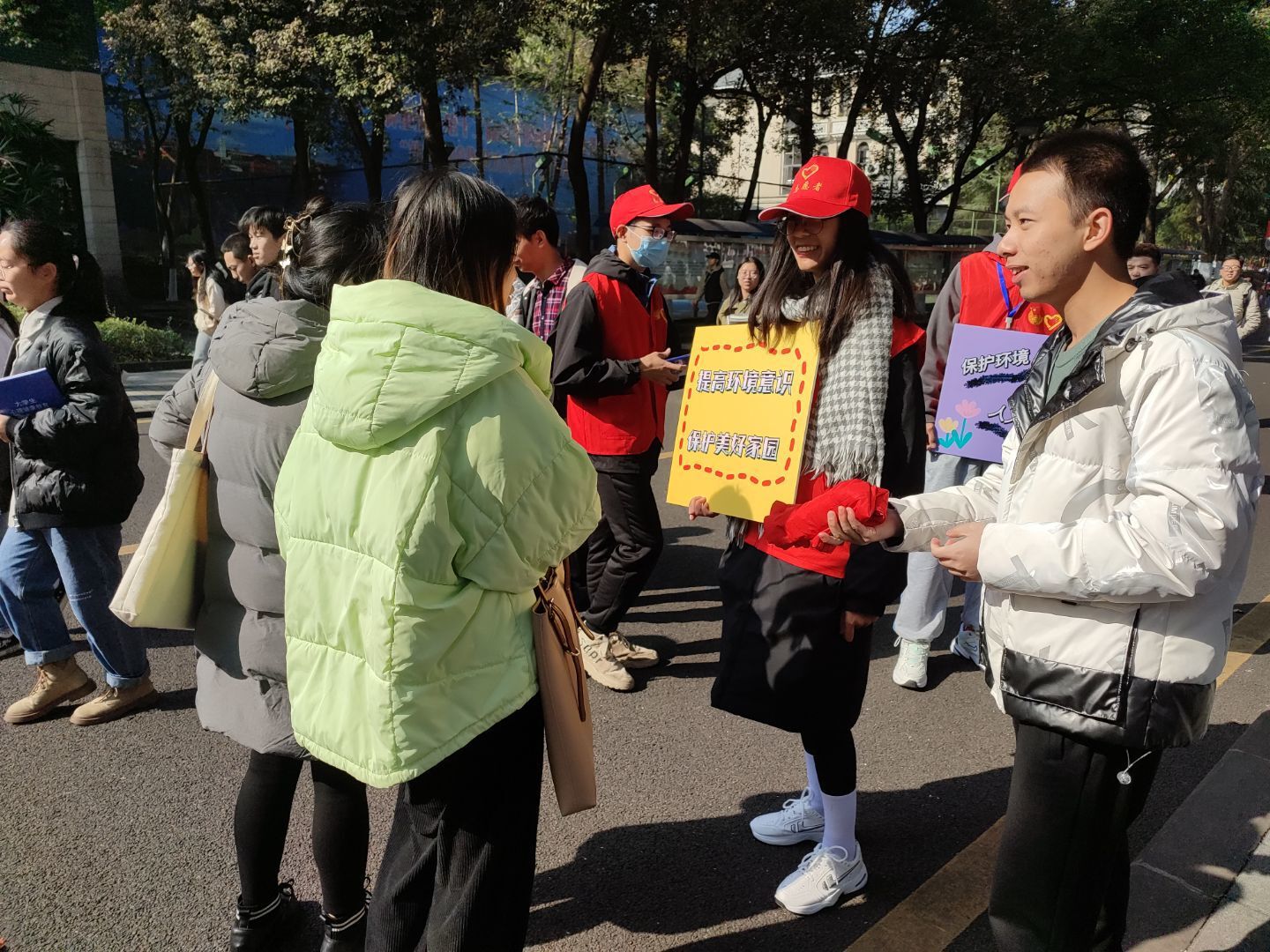 为进一步提升我院学子生态文明意识,知行合一参与生态文明建设,近日,我院青年志愿者在校园内开展态文明宣传活动。