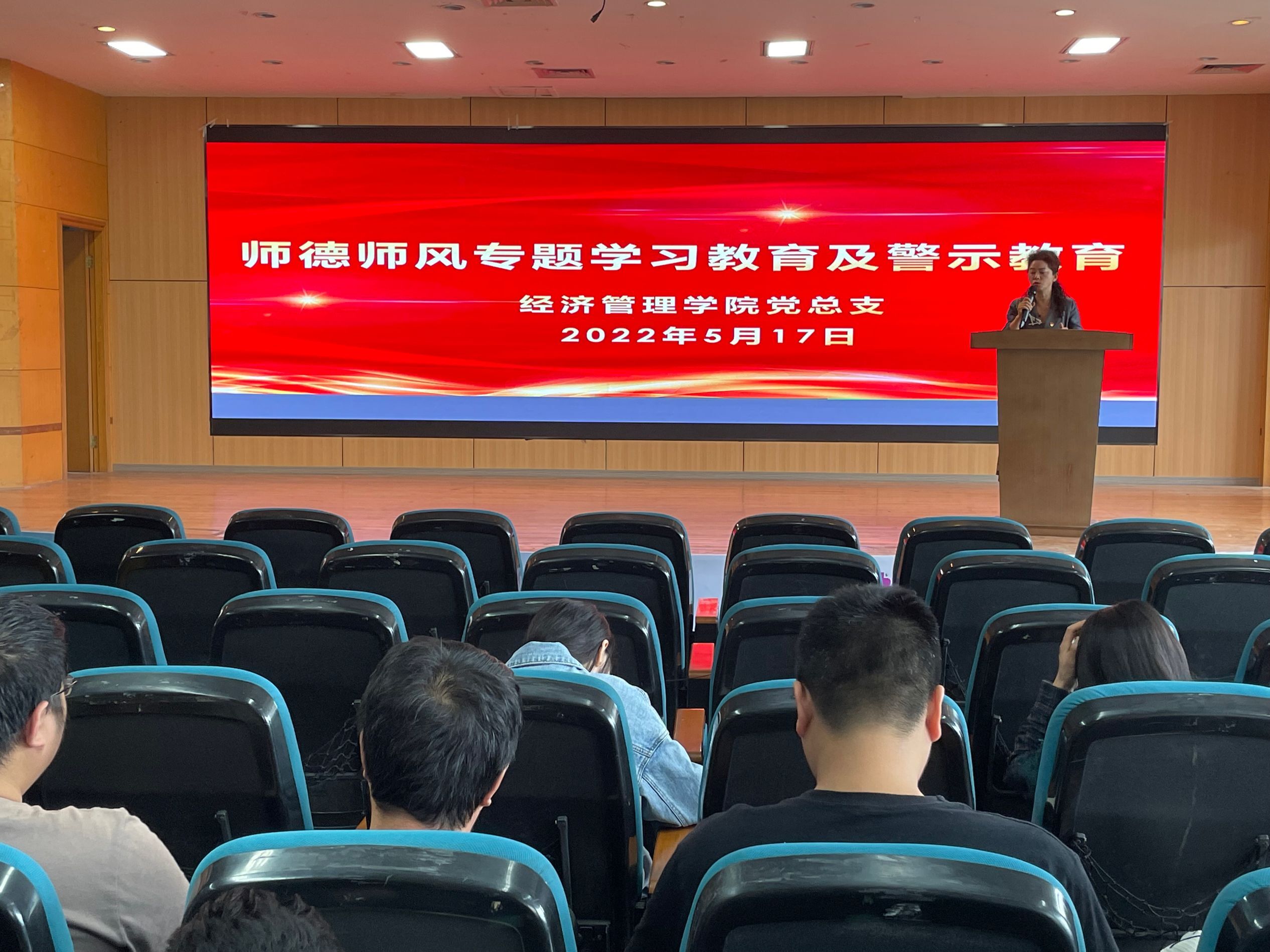 为加强师德师风建设,牢固树立教书育人的使命感和责任感,为九游网页版·官方站入口的长足发展保驾护航。5月17日下午,经济管理九游网页版·官方站入口在沙龙校区综合楼2楼会议室开展了师德师风专题学习。会议由经济管理九游网页版·官方站入口专职组织员李静主持,经济管理九游网页版·官方站入口全体教职工参加了学习。