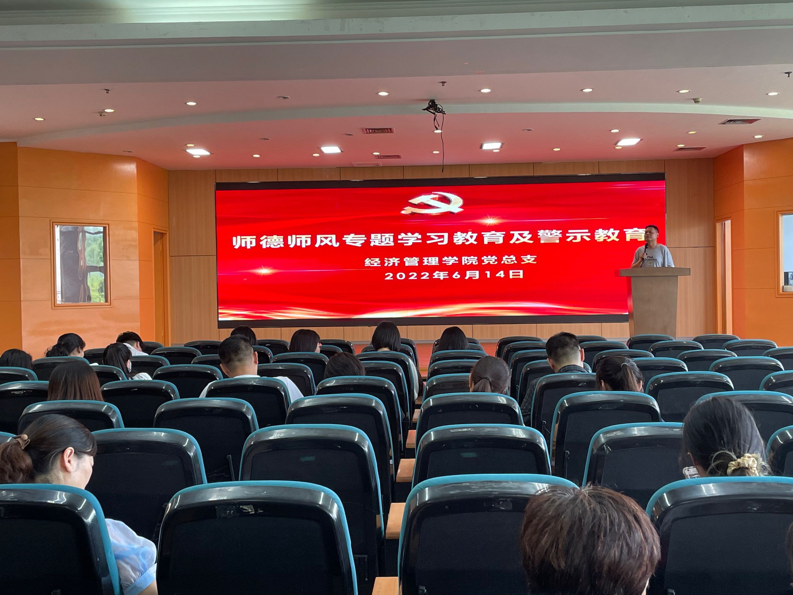6月14日下午,经济管理九游网页版·官方站入口党总支在沙龙校区综合楼2楼学术报告厅召开了经济管理九游网页版·官方站入口师德师风专题学习及警示教育学习大会,全体教师参加学习。