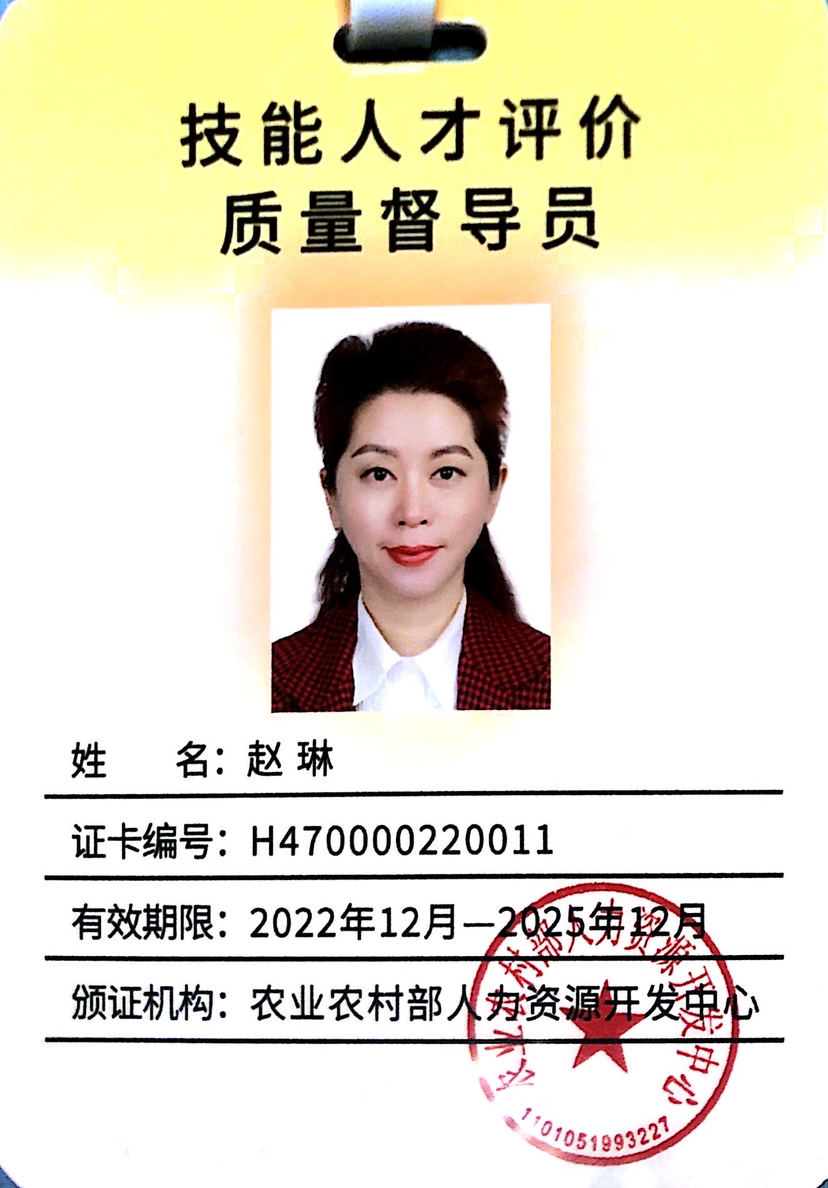 为提高技能人才评价质量督导,做好职业技能人才评价管理工作,近日我院经济管理九游网页版·官方站入口赵琳教授取得由农业农村部人力资源开发中心颁发的技能人才评价质量督导证。
