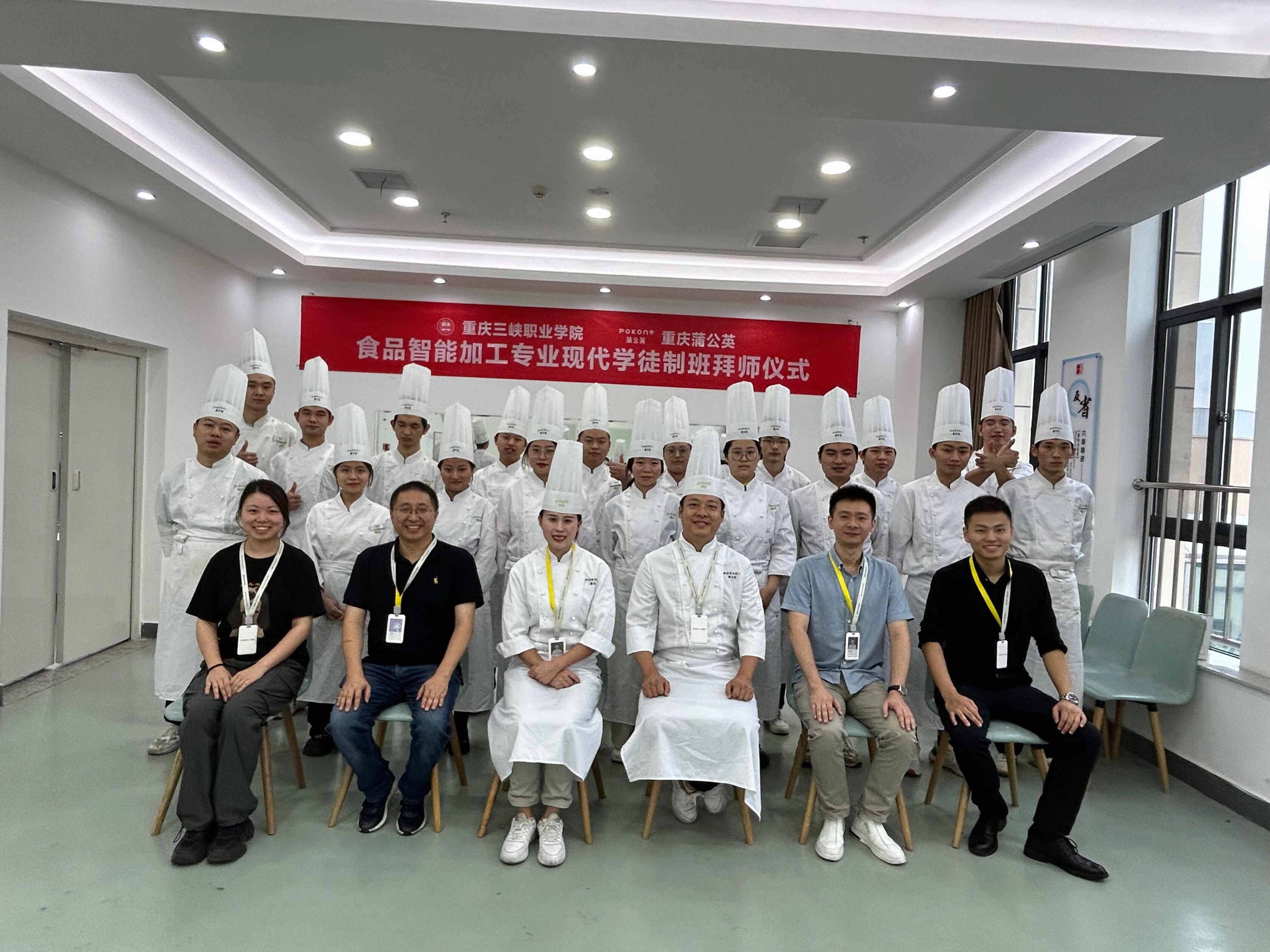 近日,农林科技九游网页版·官方站入口食品智能加工技术专业2021级现代学徒制班在重庆蒲公英中央工厂举行了一场庄重而热烈的拜师仪式。