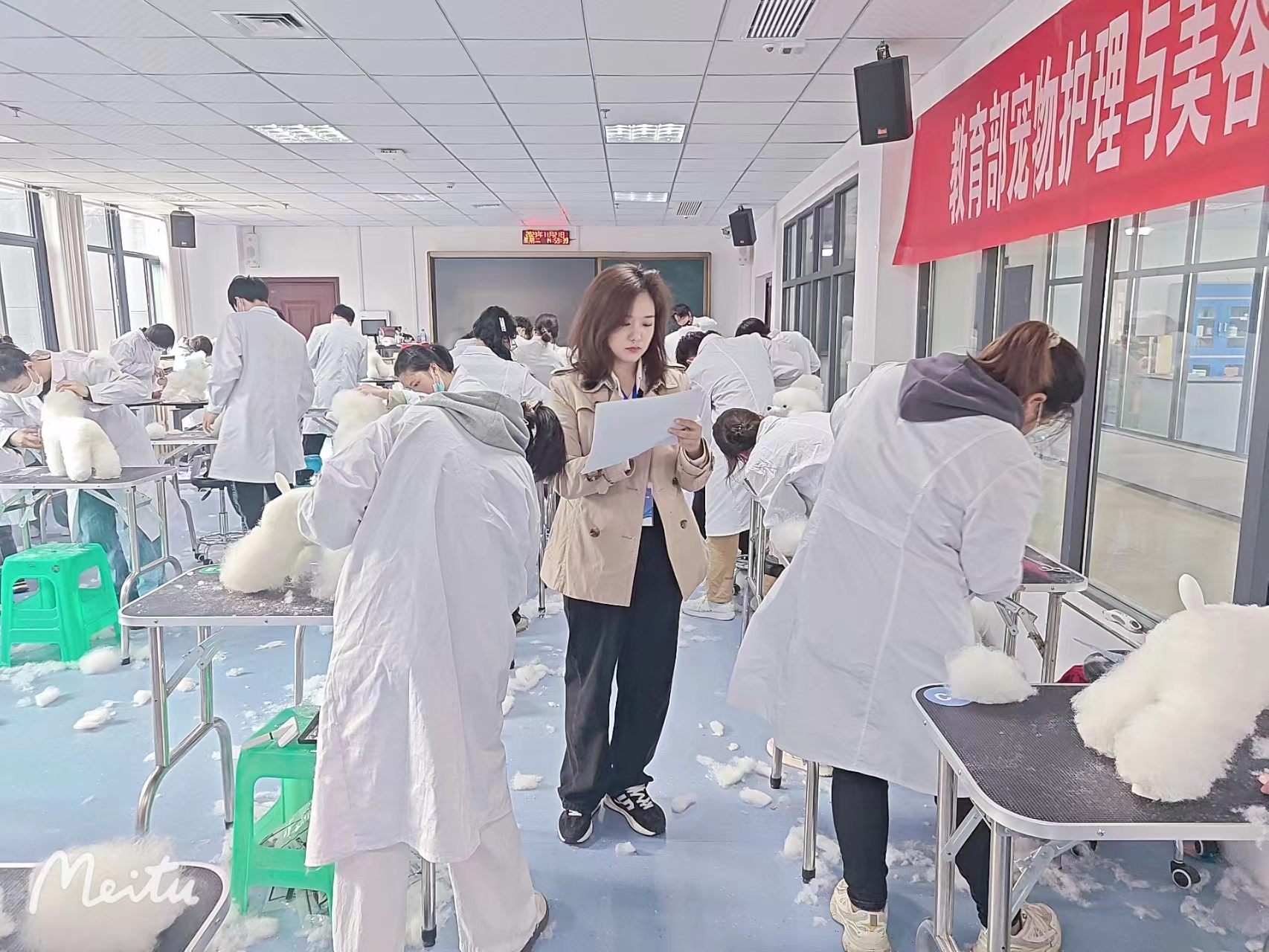 考核过程分为三个部分,包括线上理论考核、宠物基础护理湿区考核以及宠物美容造型修剪。线上理论考核涵盖了宠物护理与医疗技术的基础知识;宠物基础护理湿区考核则对学生在实际操作中的能力进行了全面评估;宠物美容造型修剪环节更是考验了学生的审美眼光和手工技巧,展现了他们在美容设计方面的专业水平。