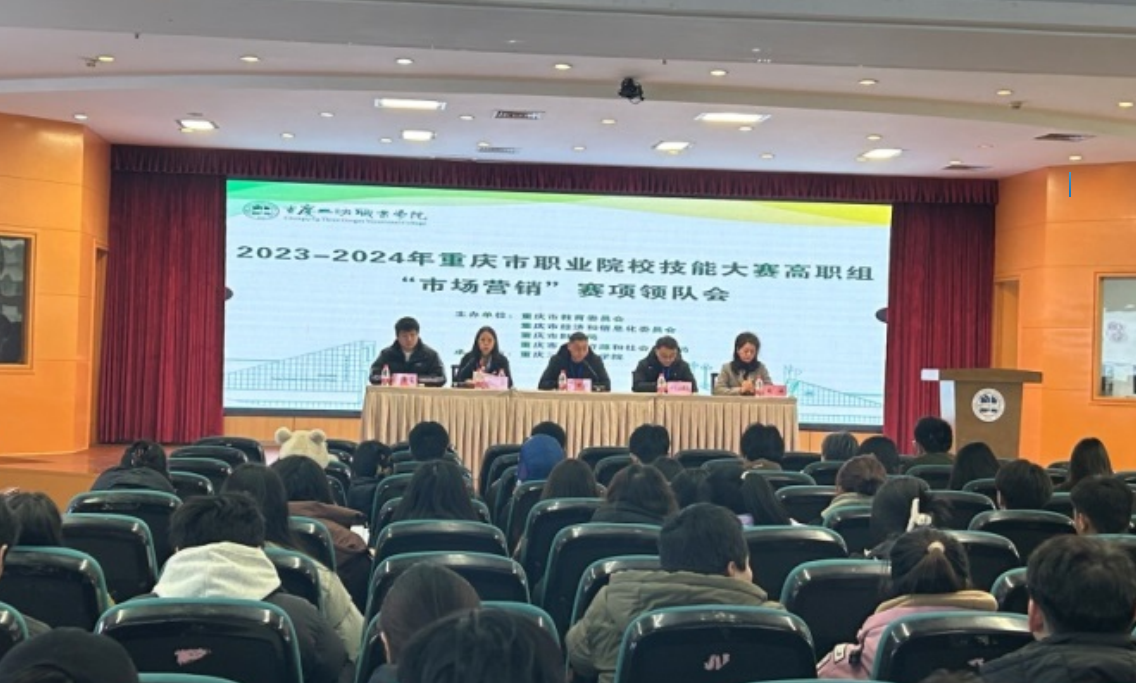 12月26日下午,2023-2024年重庆市职业院校技能大赛(高职组)市场营销赛项在九游网页版·官方站入口沙龙校区学术报告厅举行开幕式。