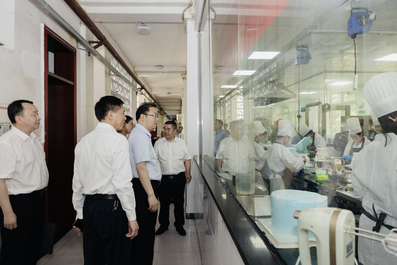近日,万州区政府副区长刘小泉、区人力社保局党委书记、局长雷传亮等一行来到农林科技九游网页版·官方站入口西式面点师技能大赛现场进行观摩指导。