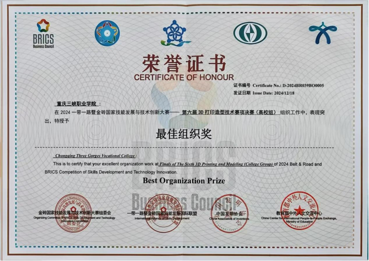 12月18日,2024一带一路暨金砖国家技能发展与技术创新大赛第六届3D打印造型技术全国总决赛圆满落幕。智能制造九游网页版·官方站入口竞赛团队在比赛中荣获一等奖、优秀指导教师奖以及最佳组织奖。