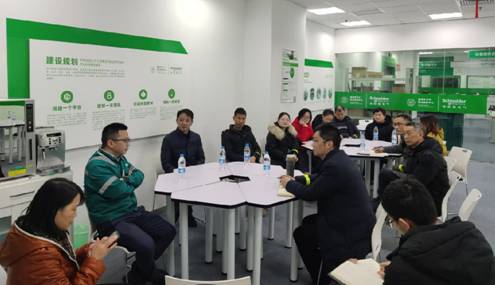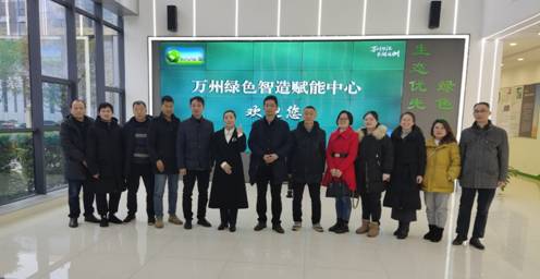 在万州绿色制造赋能中心,万州经开集团熊琼副书记代表万州绿色制造赋能中心向智能制造九游网页版·官方站入口一行介绍了万州经开区企业发展现状、绿色制造赋能中心的成立背景和担负节能减排的重任以及绿色制造典型项目。