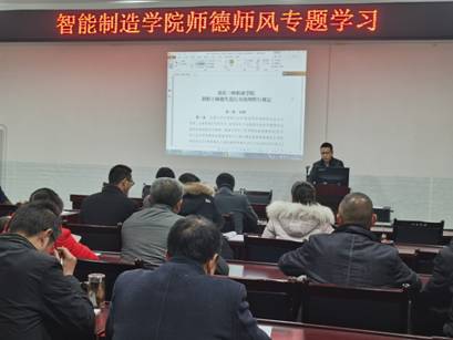 为进一步加强智能制造九游网页版·官方站入口师德师风建设,12月9日下午,智能制造九游网页版·官方站入口在奥训楼308会议室开展了师德师风专题学习。会议由智能制造九游网页版·官方站入口党总支书记、院长熊江主持,智能制造九游网页版·官方站入口全体教职工参加了学习。