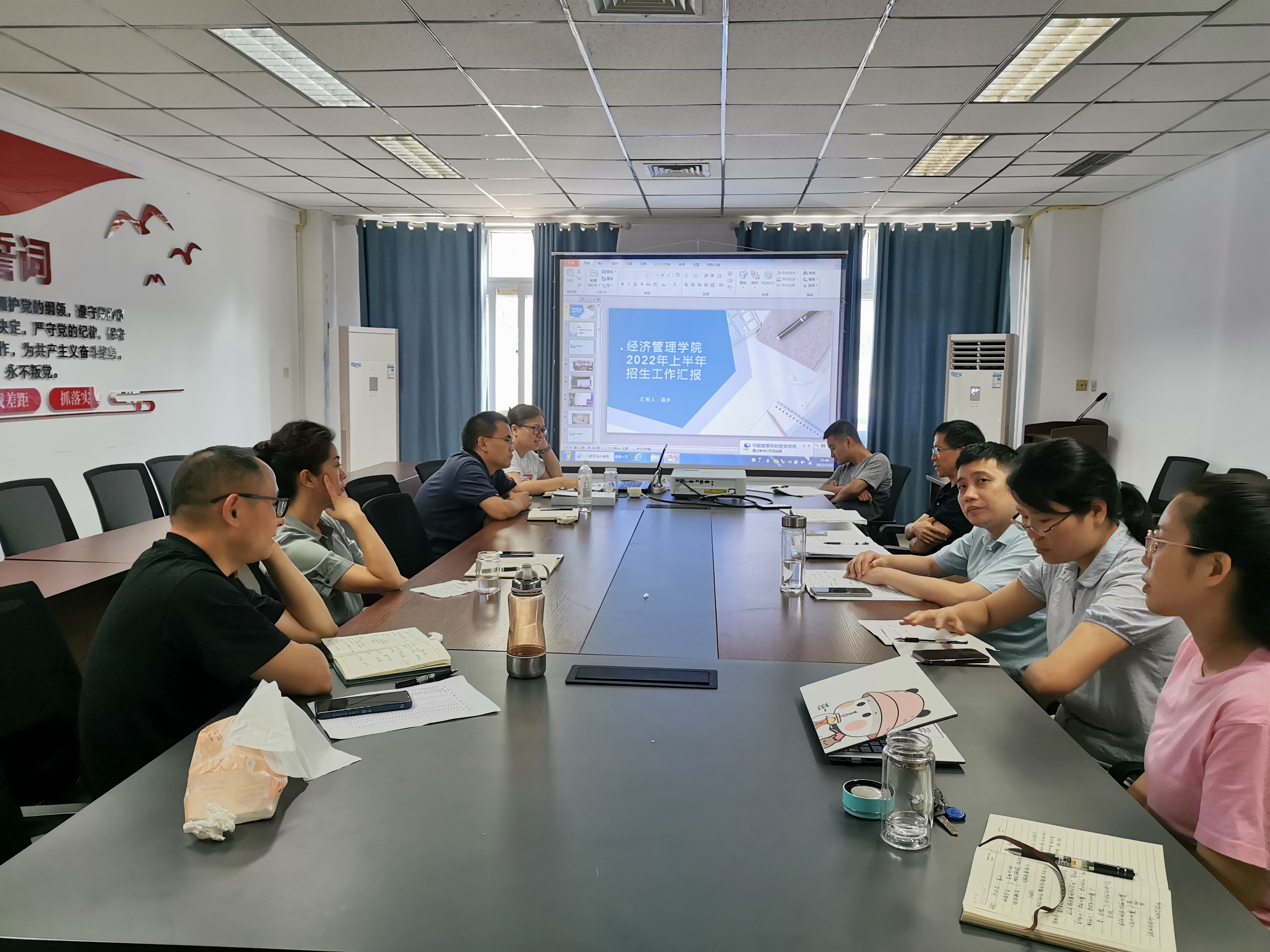 7月13日下午,经济管理九游网页版·官方站入口在沙龙校区综合楼会议室召开2022年上半年招生工作汇报会。经济管理九游网页版·官方站入口党总支书记、院长赵琳,党总支副书记张恩广,副院长陈现军,副院长潘多出席会议,各教研室主任以及招生干事参加了此次会议。