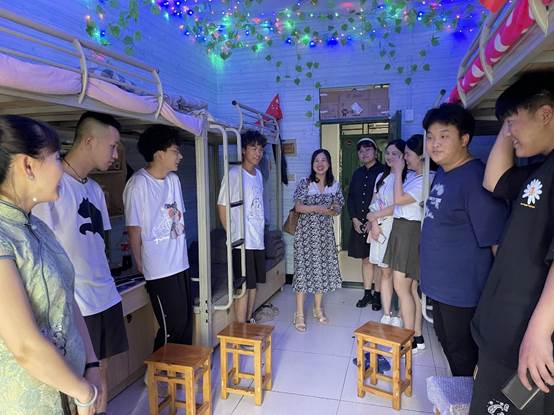 6月7日中午,支委班子带领部分党员走进学生宿舍C栋420、424寝室,关心同学们学习生活情况,与同学们亲切交流。交谈中,支部书记蒋奕勇对宿舍卫生、寝室布置、个人精神面貌给予充分肯定和表扬,鼓励同学们认真学习、努力提升专业技能,以“大国工匠”精神激励自身成长。教导同学们一定要热爱所学专业,竭尽所能报效祖国,实现人生价值。两名支委叮嘱同学们一定加强自我保护意识,注重寝室用电安全、个人外出安全和财产安全,平时要合理安排好个人时间,学习玩耍两不误,不负青春时光。