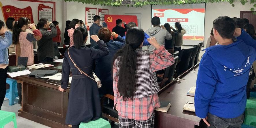 随后,全体党员重温入党誓词。“我宣誓,我志愿加入中国共产党,拥护党的纲领,遵守党的章程……”仪式中,在动物科技九游网页版·官方站入口党总支书记张传师的领誓下全体党员面对神圣的党旗庄严肃立,高举右手郑重宣誓。一句句铿锵有力的誓言汇聚成一股强大的能量,不仅是对党的庄严承诺和坚定决心,也是全体党员的共同心声、责任和使命。