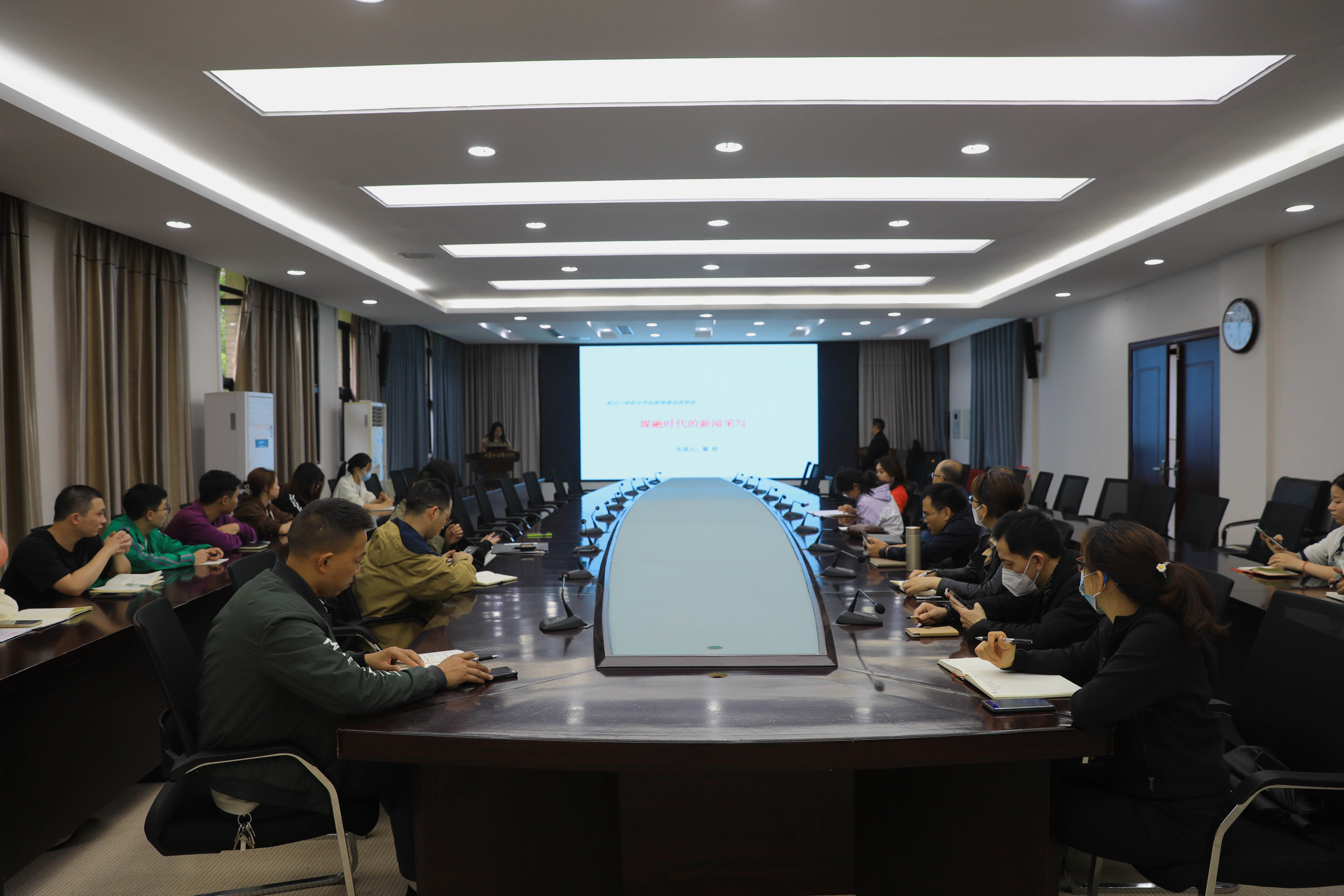 章权教授以《融媒时代的新闻写作》为题,聚焦“如何写好新闻标题”、“如何判断新闻的价值”、“新闻采访的要义”等问题,为九游网页版·官方站入口师生开展新闻写作培训专题讲座。他指出,新闻报道必须抓住“新、活、快”三特征,写好新闻要在提炼主题、选择体裁、选好角度、写好标题和凝炼导语等方面下功夫,他结合自身工作经验,运用九游网页版·官方站入口的新闻报道案例,围绕新闻标题、新闻导语、消息写法、新闻采访准备应注意的问题等方面内容进行了详细讲解。培训内容丰富翔实,语言通俗易懂,紧贴工作实际,具有很强的指导性和可操作性。