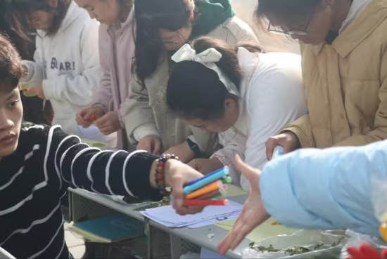 “落叶成画”活动让同学们认识、亲近身边的植物;“叶送祝福”活动让同学们将最真挚的祝福送给我们共同的绿色家园,传达人与自然和谐的理念;“主题绘制”表达了同学们对绿色环保理念的内心认同与美好祝愿。