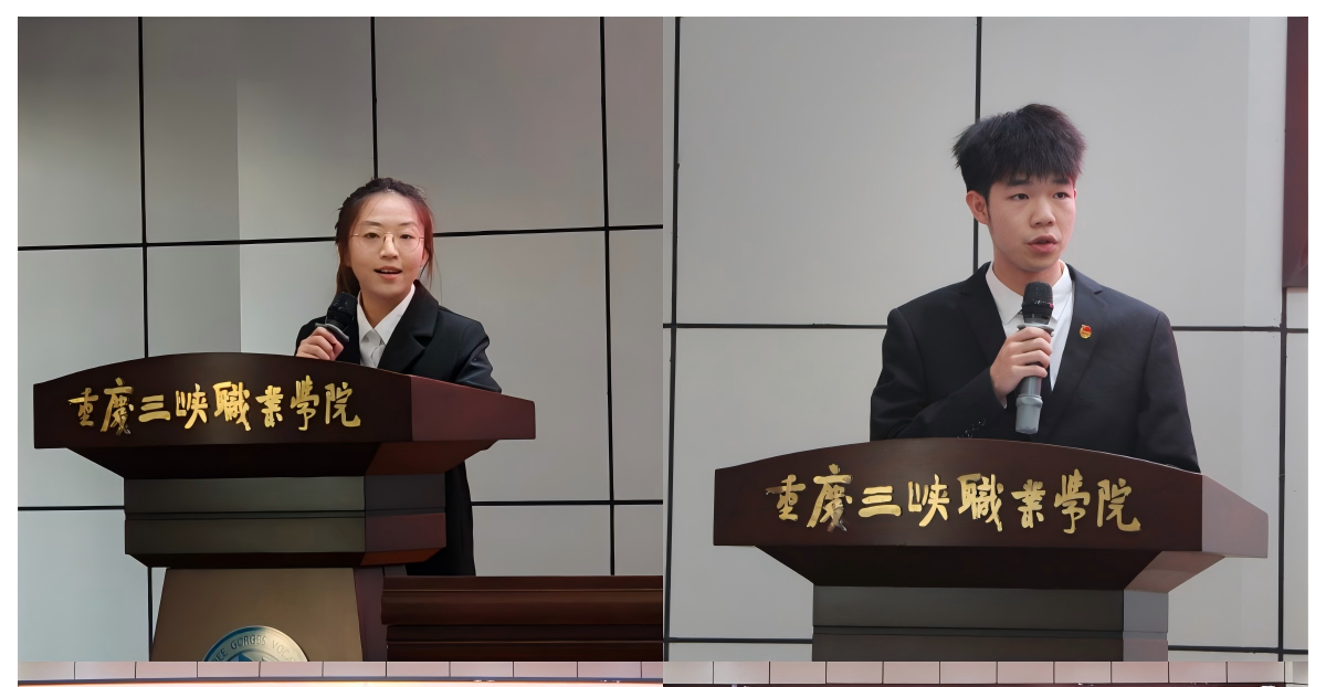 仪式上,第十七期优秀学员代表周相伶同学发言回顾了“青马工程”一年的学习,号召团员骨干认真学习理论知识,积极参与实践活动;王晓童同学代表第十八期学员发出承诺,会以饱满的热情、坚定的信念、务实的作风投入青马工程的学习和实践中去,努力成长为信仰坚定、能力突出、素质优良、作风过硬的青年政治骨干。