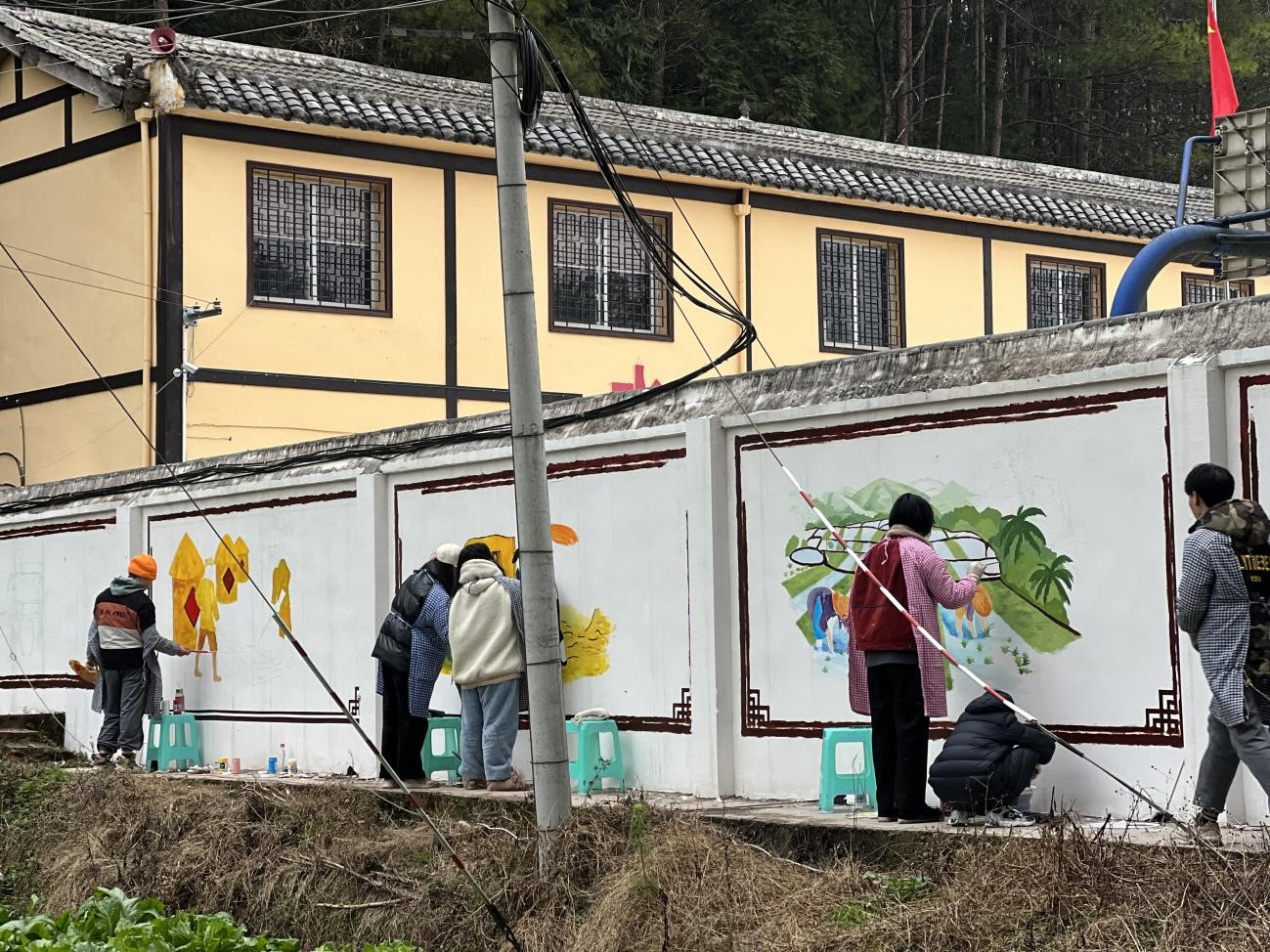 为充分发挥基层党组织的战斗堡垒作用和广大党员教师和党、团员学生的先锋模范作用,扎实开展“我为群众办实事”实践活动,全面推进乡村振新,人工智能九游网页版·官方站入口党总支第二党支部的老师和动漫制作技术、建筑室内设计的同学们,发挥专长与文化育人载体作用对万州区恒合土家族乡水口村村委会的外墙进行外墙美化。