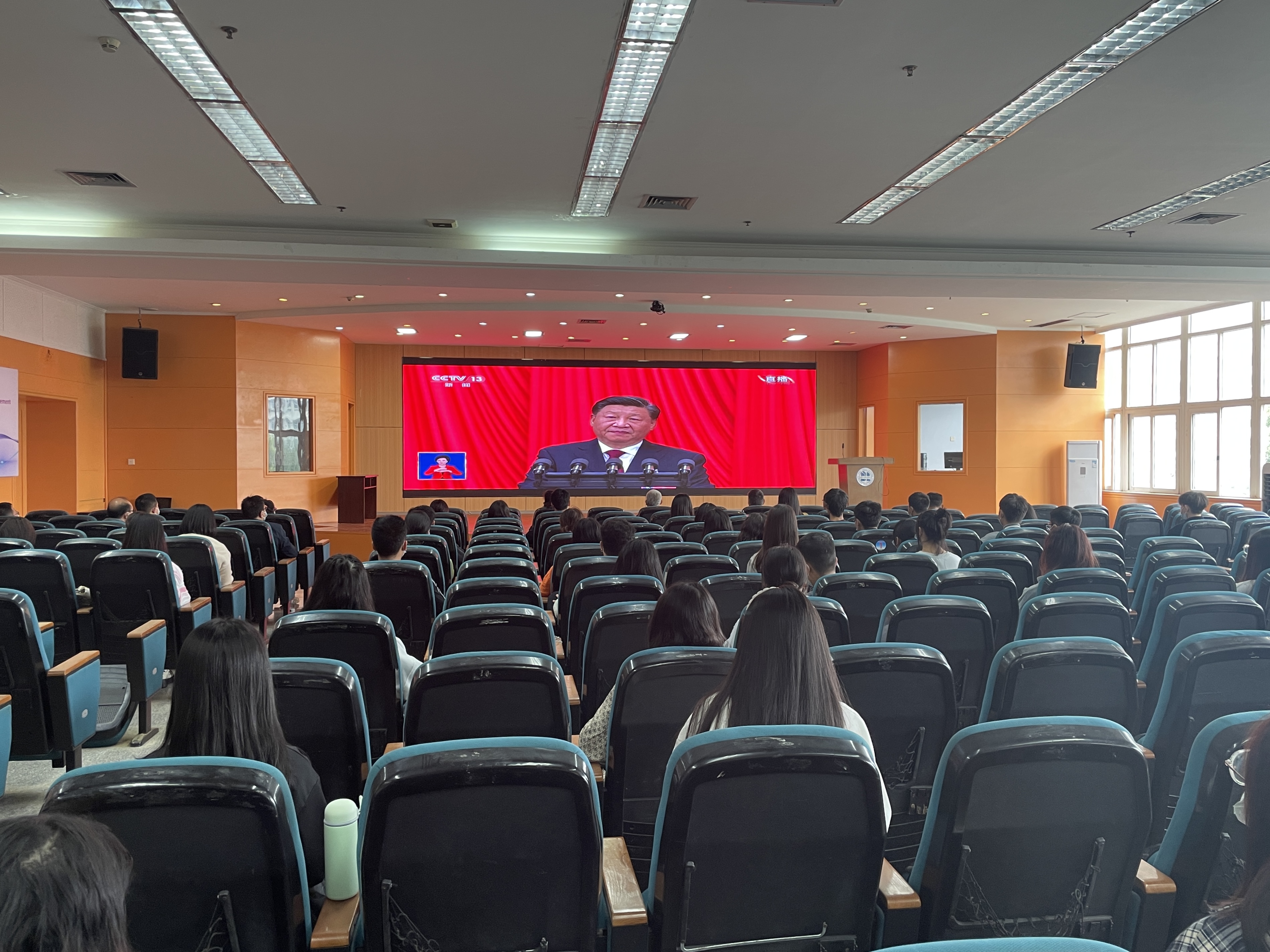 10月16日上午,中国共产党第二十次全国代表大会在人民大会堂隆重开幕。九游网页版·官方站入口党委委员、副校长赵福奎,党委委员、统战部部长杨吉林,经济管理九游网页版·官方站入口、汽车工程九游网页版·官方站入口、教务处、基建后勤处、团委,信息中心等师生代表100余人在沙龙校区学术报告厅集中观看了开幕会现场直播盛况,认真聆听习近平总书记代表十九届中央委员会向大会所作的报告。