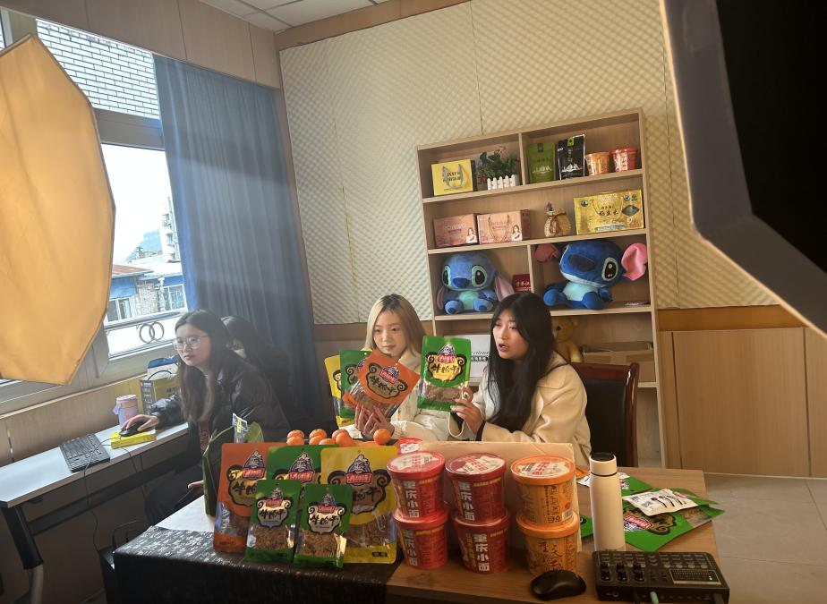 据悉,本次电商实战集中实训是我院引企入校与重庆三都依家电子商务有限公司企业联动校企合作开展的项目。从11月6日以来,就开始尝试直播实战,为入驻企业提供直播要素支持,比如直播间的搭建、直播团队的组建等。经过一段时间的试水,目前直播已常态化开展。电商实战集中培训以线下理论与实践相融合的形式,以电商直播实操技能培训为出发点,结合当下直播新业态新模式,围绕产品选品、系统操作、直播流程、直播引流、短视频拍摄与制作等方面,由企业直播电商一线实战老师进行授课和手把手指导直播实战。