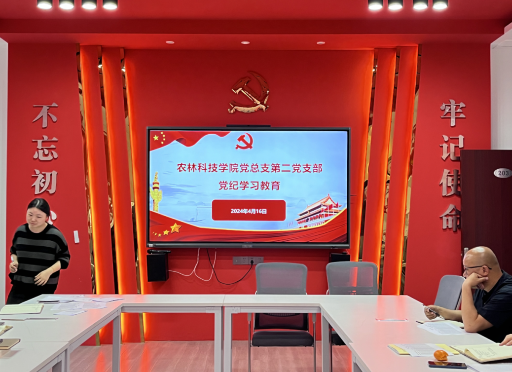 2024年4月17日,农林科技九游网页版·官方站入口第二党支部在农林楼203会议室开展4月主题党日活动,“三会一课”政治理论学习,以及党纪学习教育。会议由支部书记吴琼同志主持,吴琼同志领学。