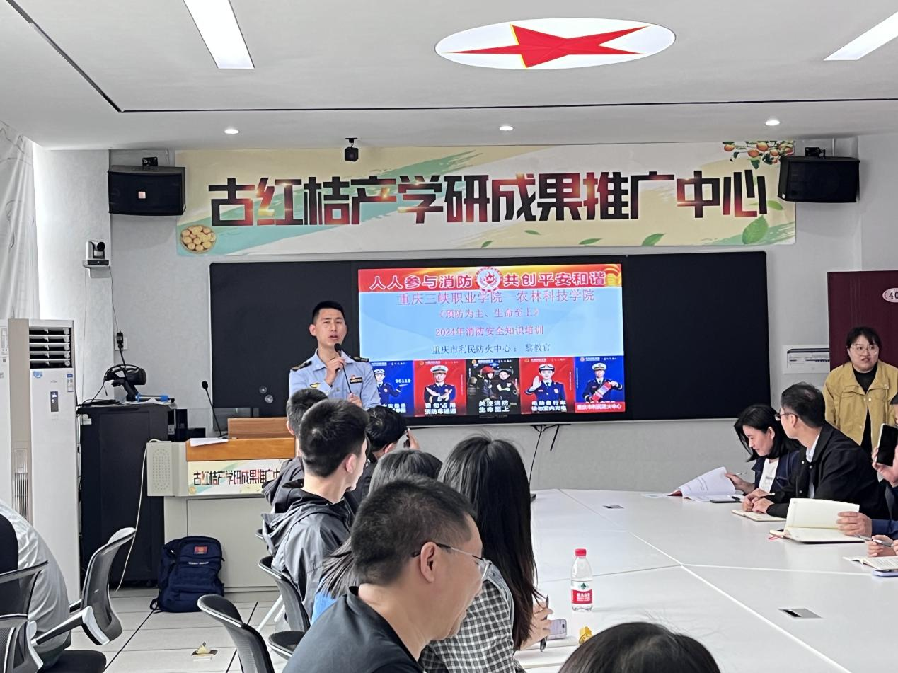 为了提高农林科技九游网页版·官方站入口全体教师的消防安全意识,确保校园安全,今日我院特邀重庆市利民防火中心黎教官为全体教师进行了消防安全知识培训。