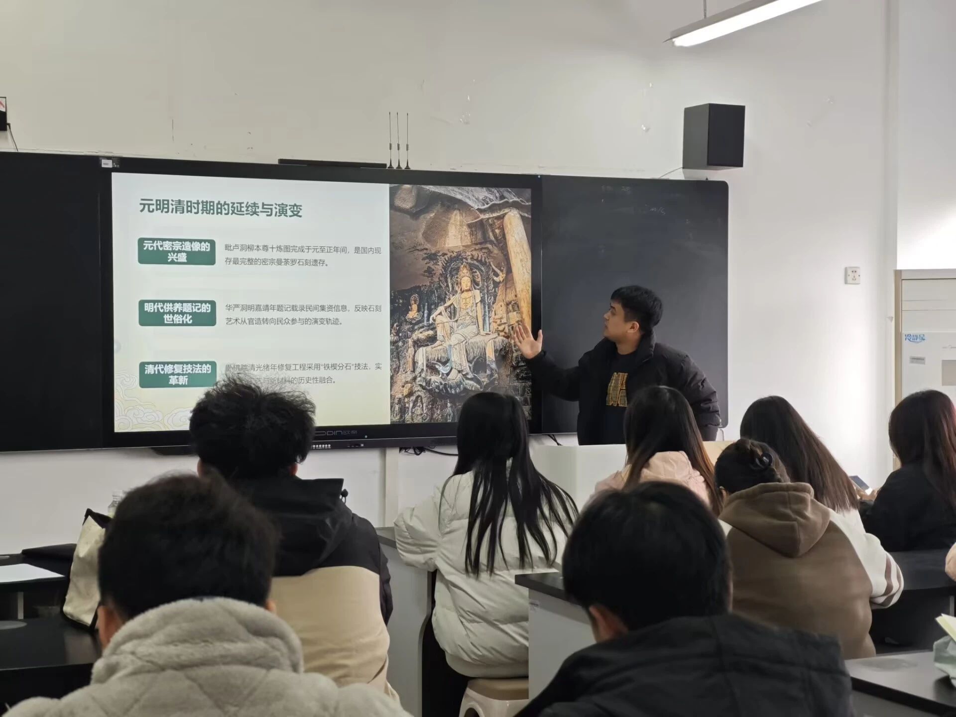 活动现场,来自不同地域的同学们纷纷登台,他们用饱含深情的语言和精美的PPT展示着自己家乡的独特魅力。从重庆奉节的自然风光到大足石刻的人文历史,从甘肃嘉峪关的雄浑壮阔到四川大凉山的多彩文化,每一幅画面、每一段讲述都仿佛带着同学们穿越千山万水,领略着祖国大好河山的壮丽与细腻。