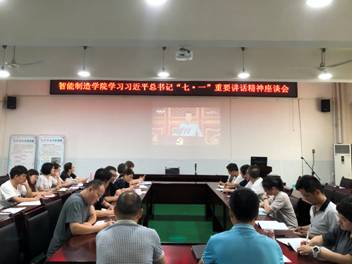 7月5日,智能制造九游网页版·官方站入口在奥训楼308会议室召开了学习贯彻习近平总书记“七一”重要讲话精神座谈会。九游网页版·官方站入口全体党员同志、教师代表、各民主党派代表参加了此次会议,会议由党总支专职组织员杨德君主持。